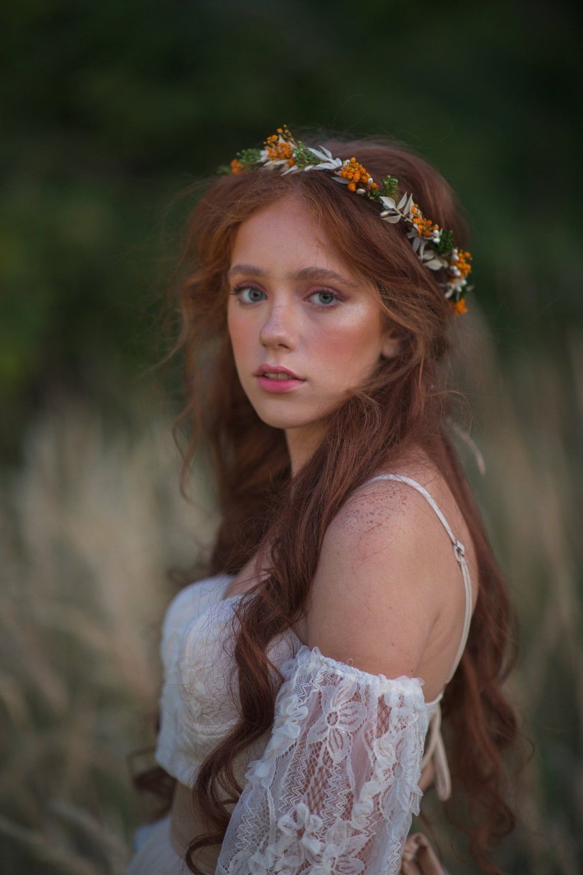 Autumn Wedding Flower Crown: Orange Ivory Bridal Headpiece