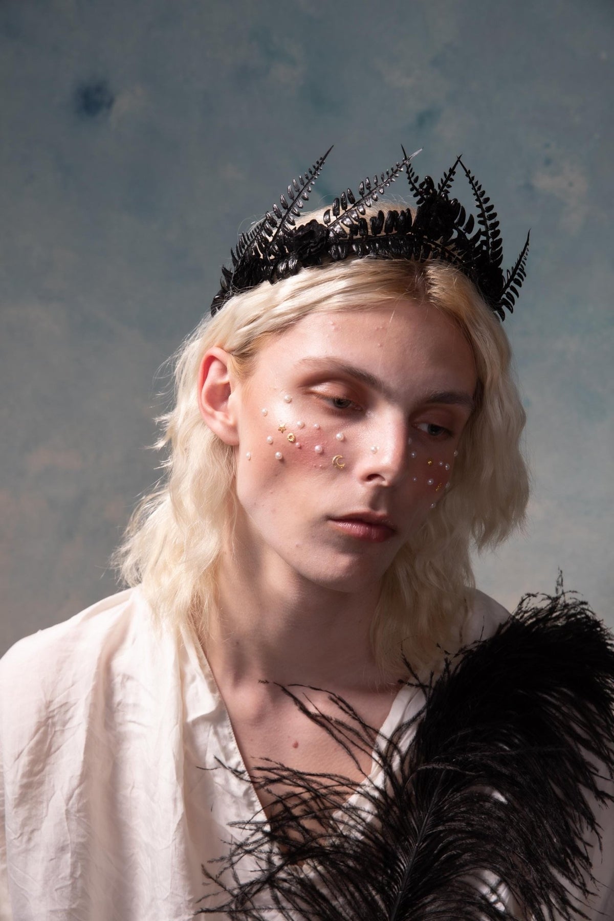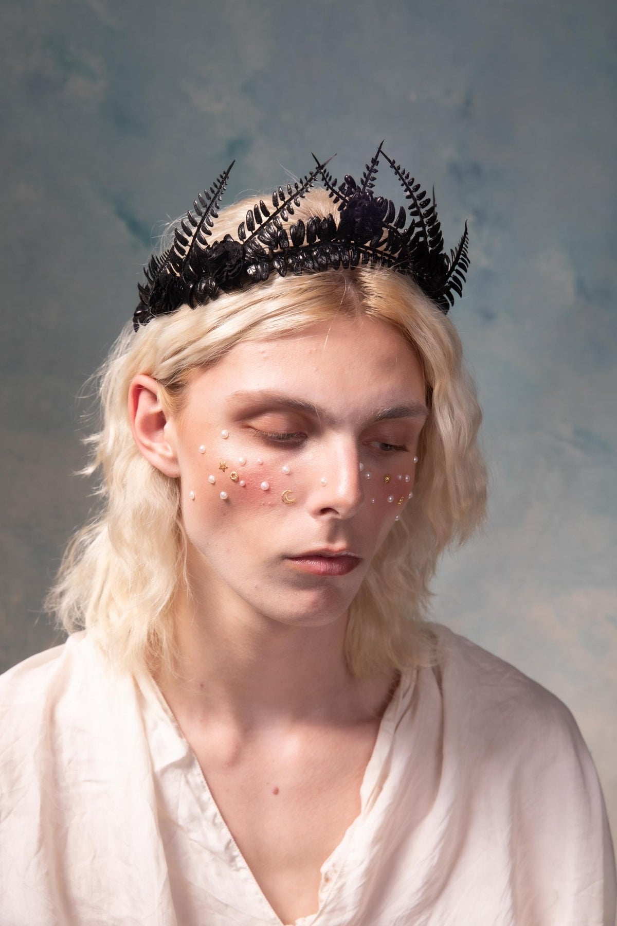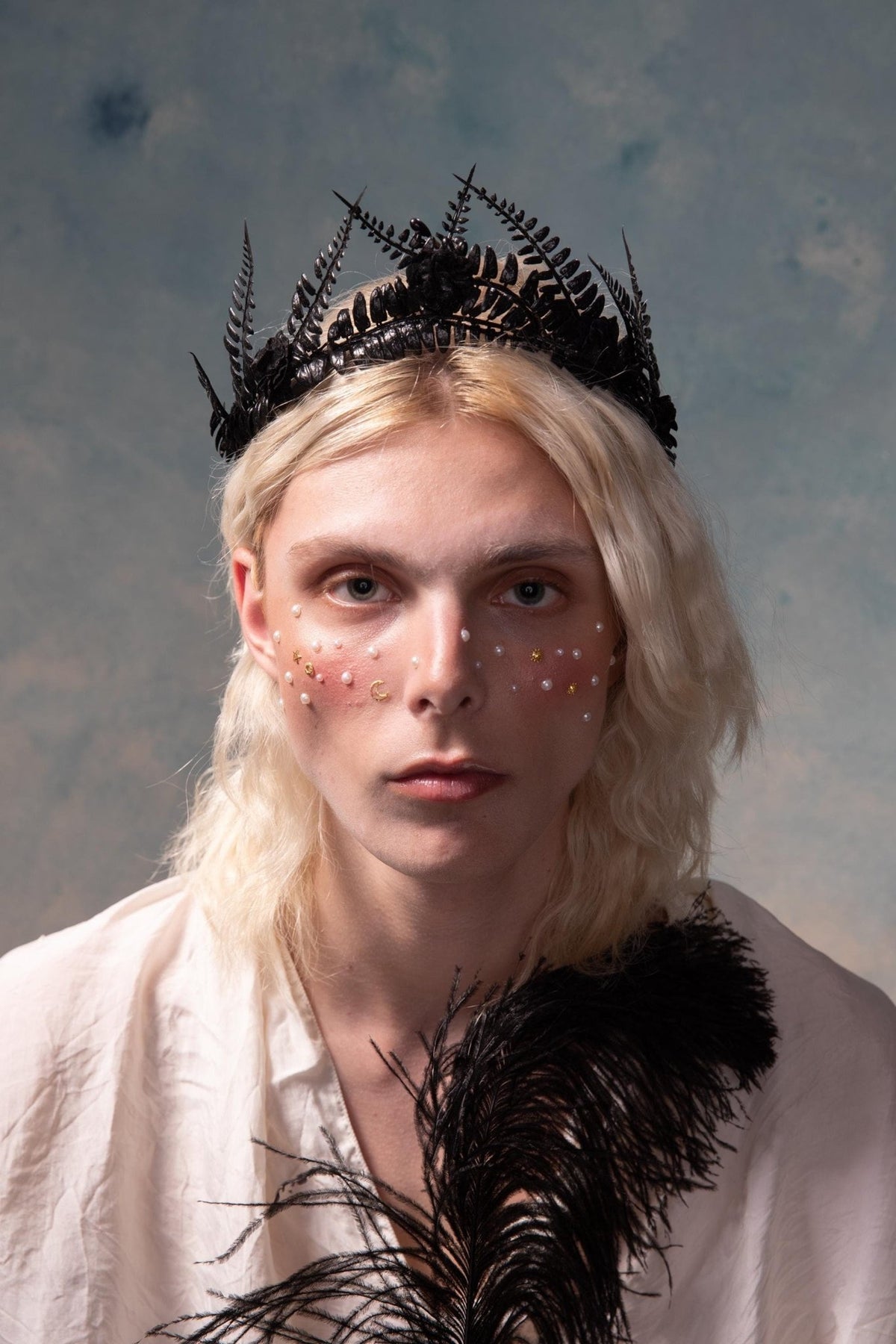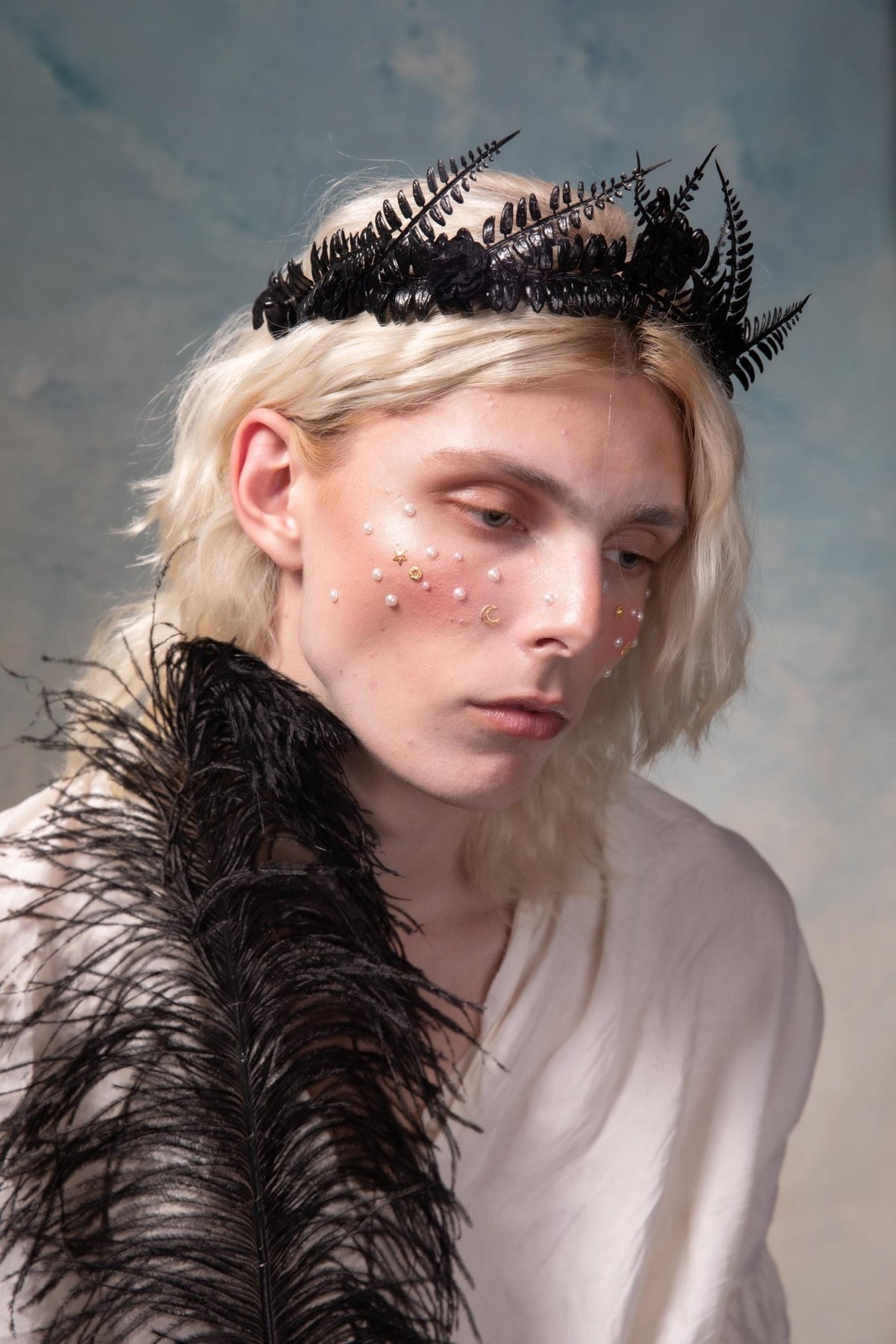 Black Flower Crown: Gothic Wedding Tiara, Pagan Headpiece – handmade floral hair accessory by magaela