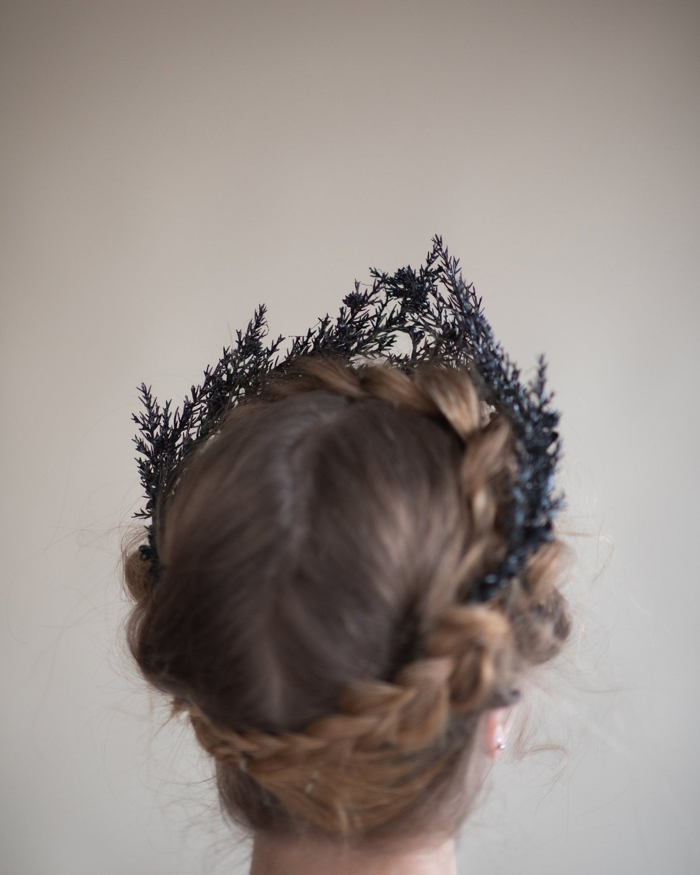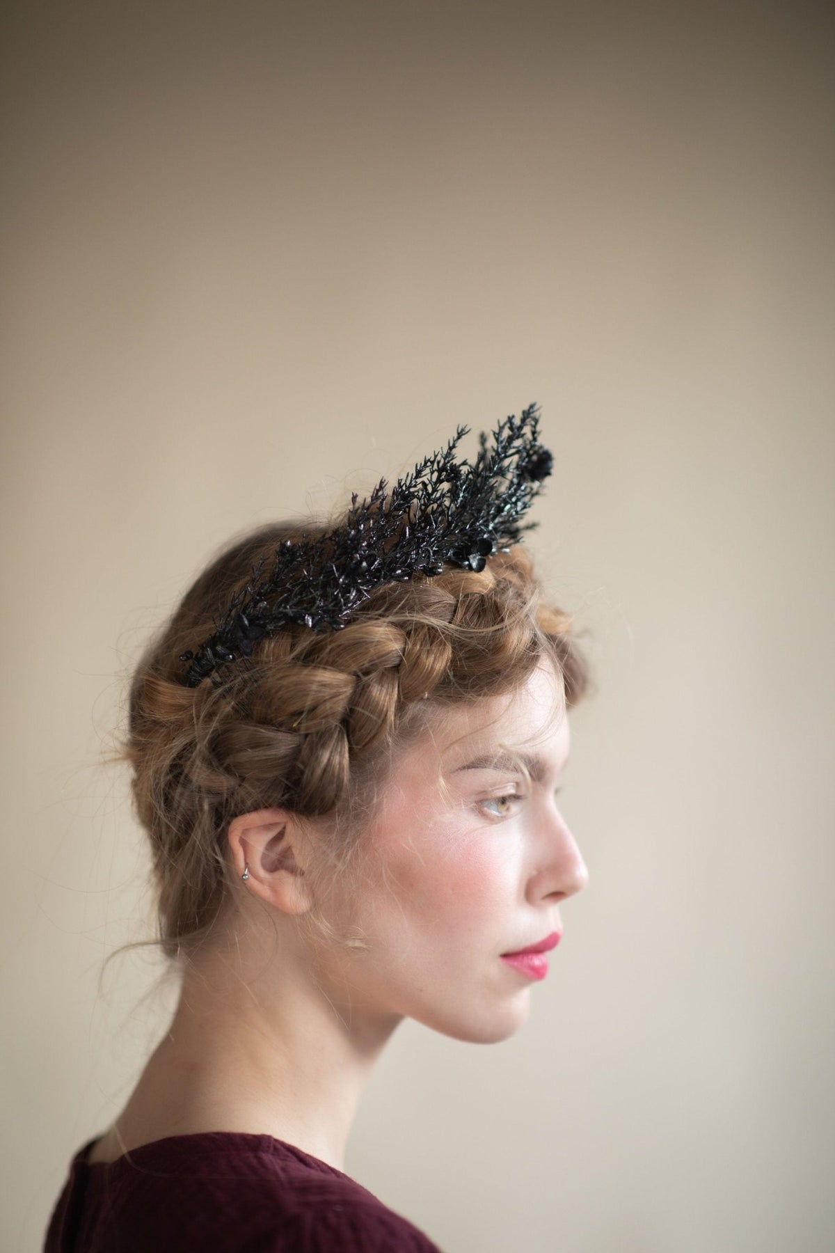 Black Flower Wedding Crown: Gothic Evil Queen Headpiece – handmade floral hair accessory by magaela