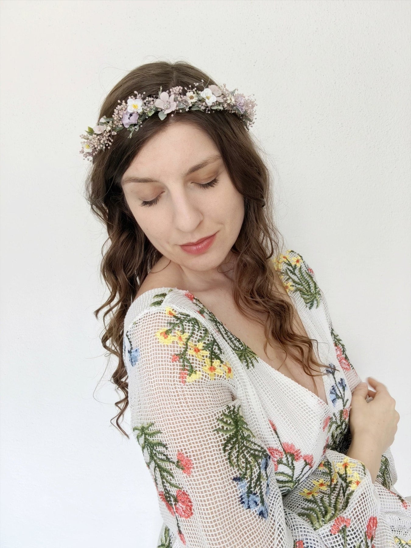 Pastel Flower Hair Crown: Romantic Bridal Headpiece – handmade floral hair accessory by magaela