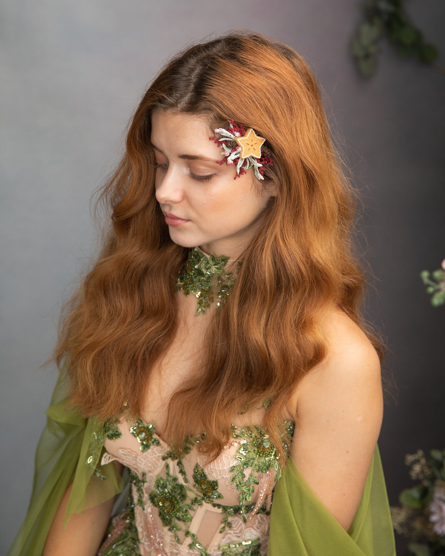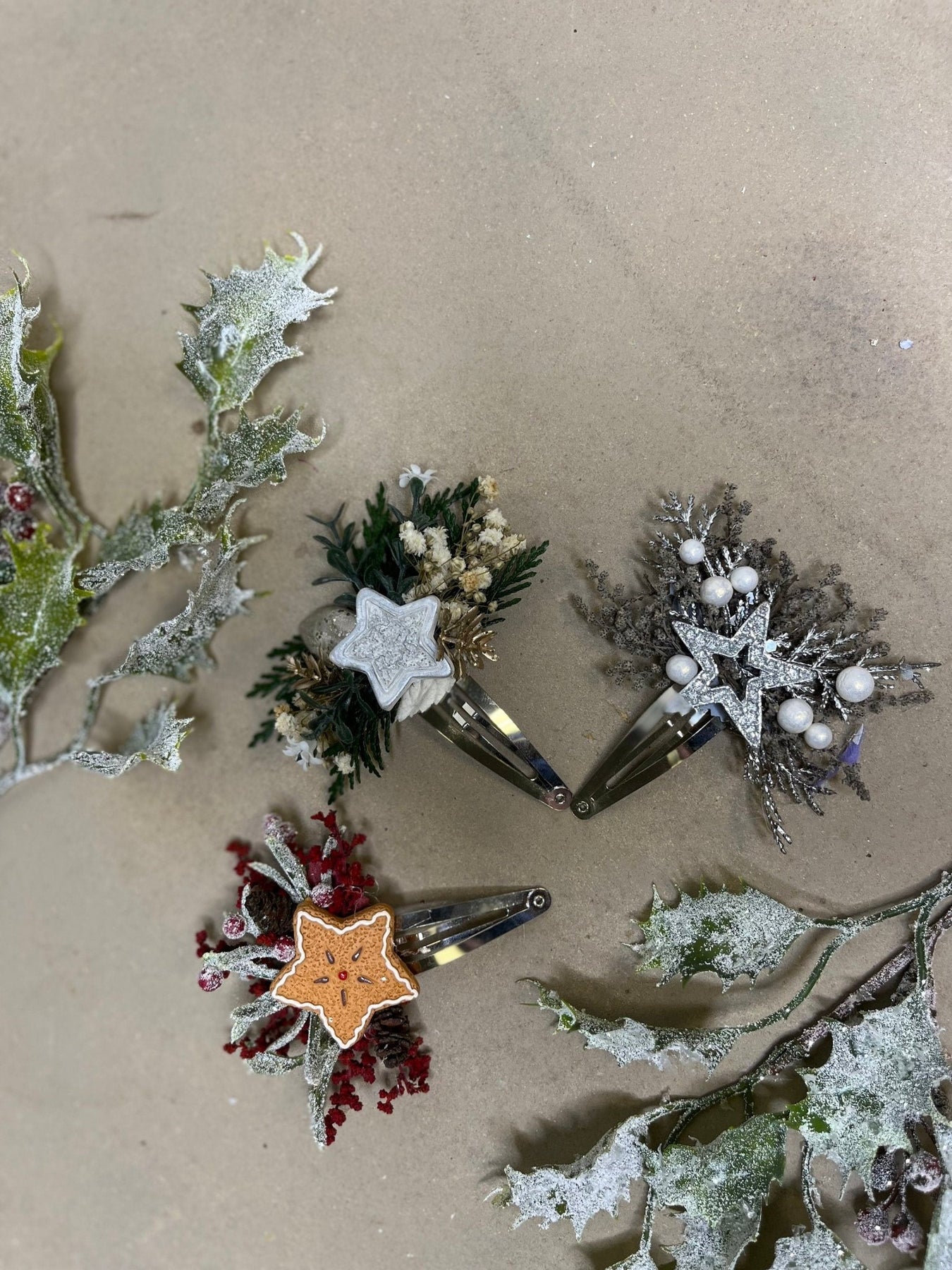 Christmas Star Flower Hair Clip: Winter Gingerbread Accessory