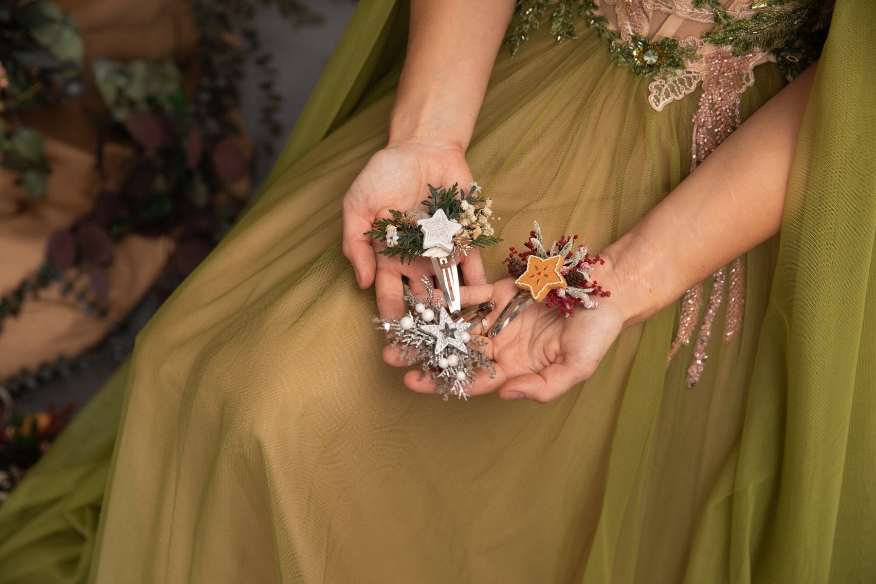 Discover original handmade headbands, wreaths, brooches, earrings, and other accessories and jewelry that will brighten every moment – from festive parties and Christmas Eve dinners to winter weddings and New Year’s celebrations.