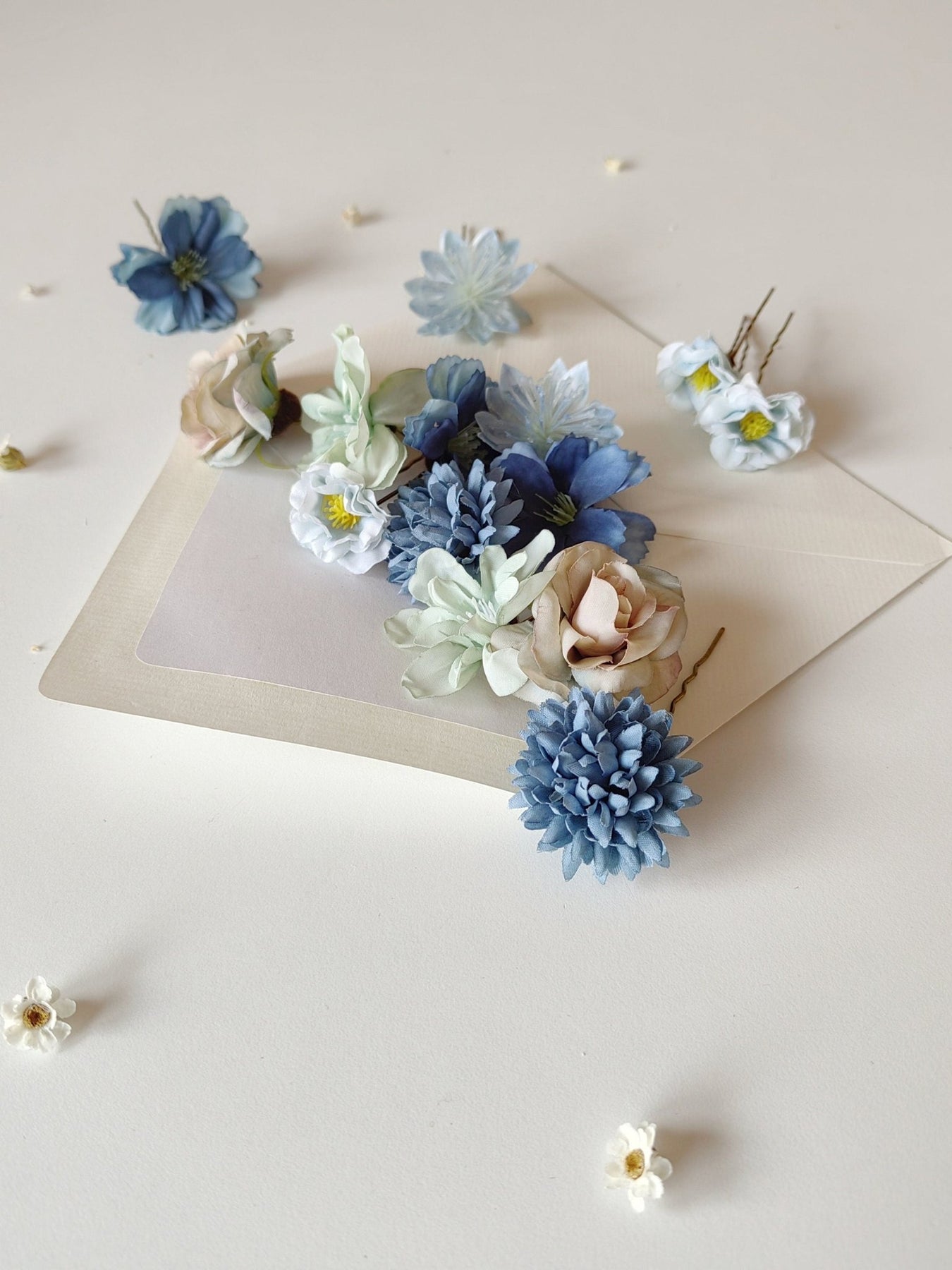 Blue Flower Hairpins: Boho Wedding Hair Accessories, Set of 14 – handmade floral hair accessory by magaela