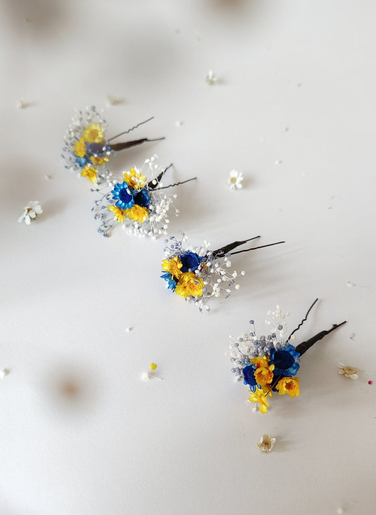 Blue & Yellow Flower Hairpins: Preserved Floral Bridal Hair Accessories – handmade floral hair accessory by magaela