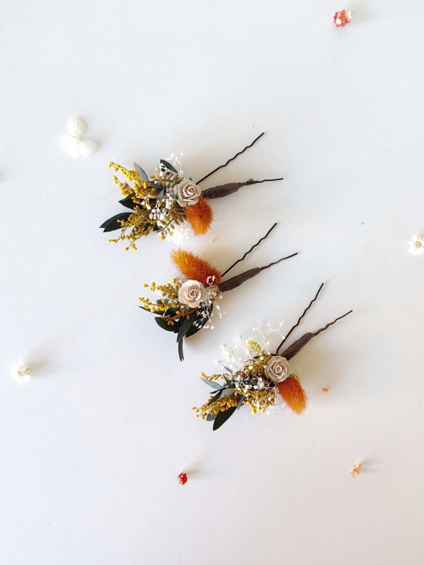 Terracotta Flower Hairpins: Autumn Wedding Bridal Hair Accessory – handmade floral hair accessory by magaela