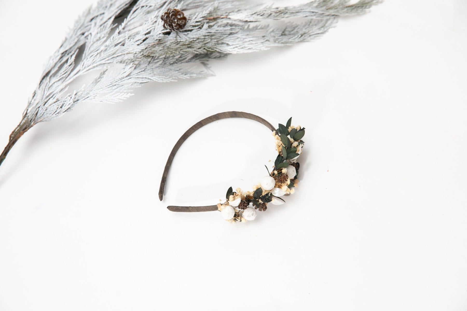 Floral Pine Cone Headband: Winter Wedding Hair Piece