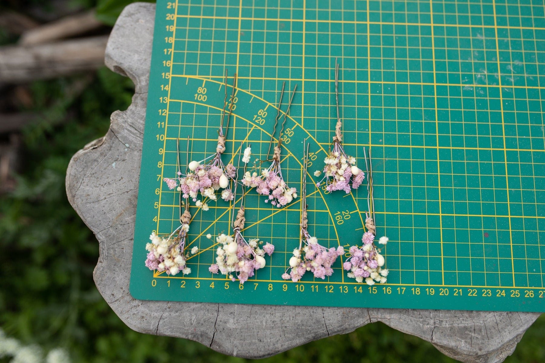 Dusty Pink Dried Flower Hairpins: Romantic Wedding Accessories