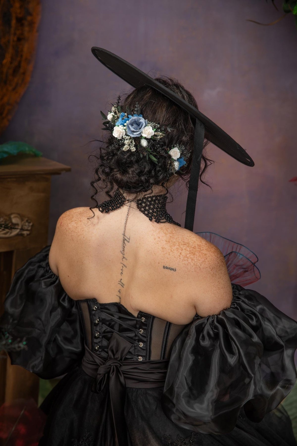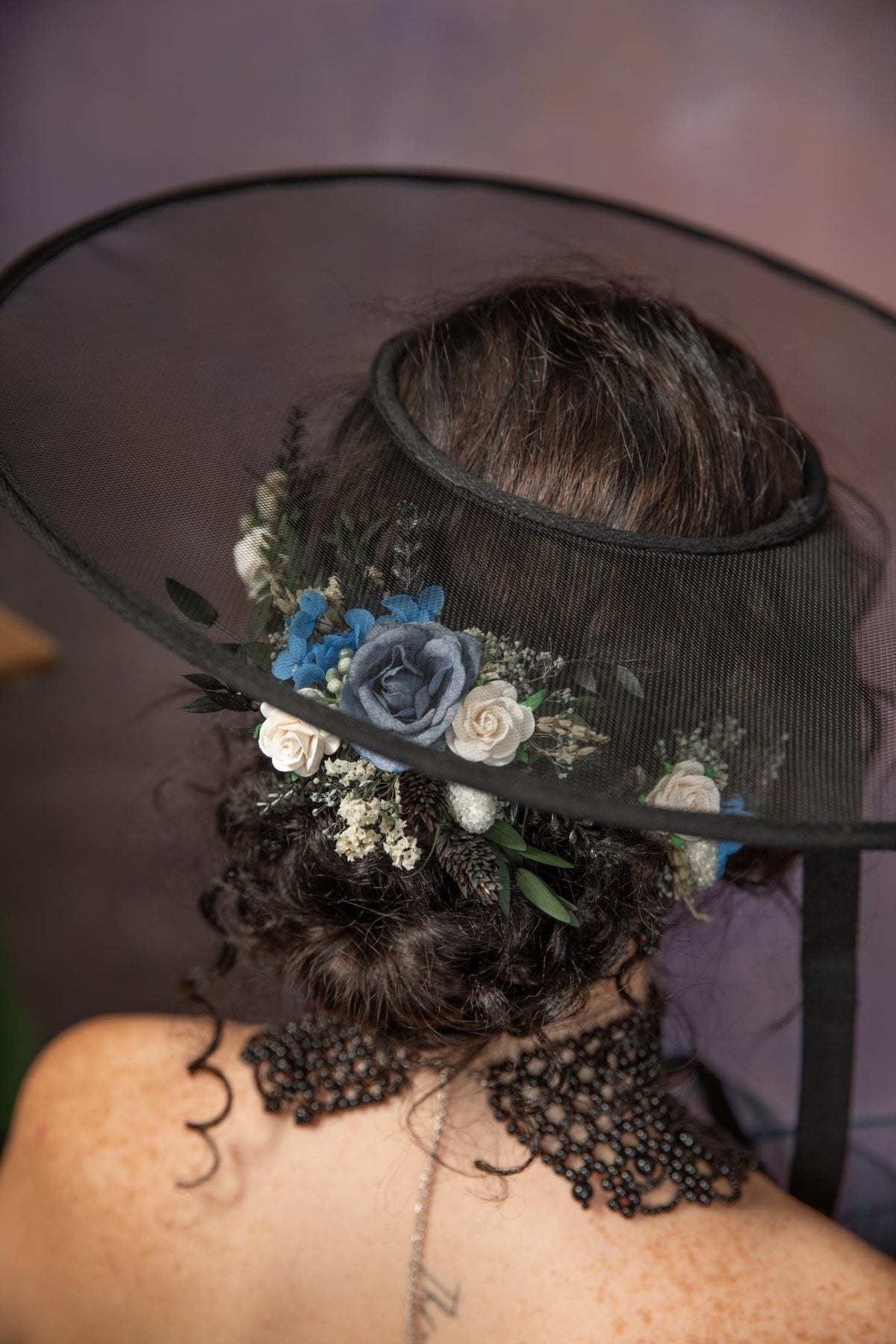 Blue Floral Hair Comb: Gothic Bridal Hair Vine, Winter Wedding – handmade floral hair accessory by magaela
