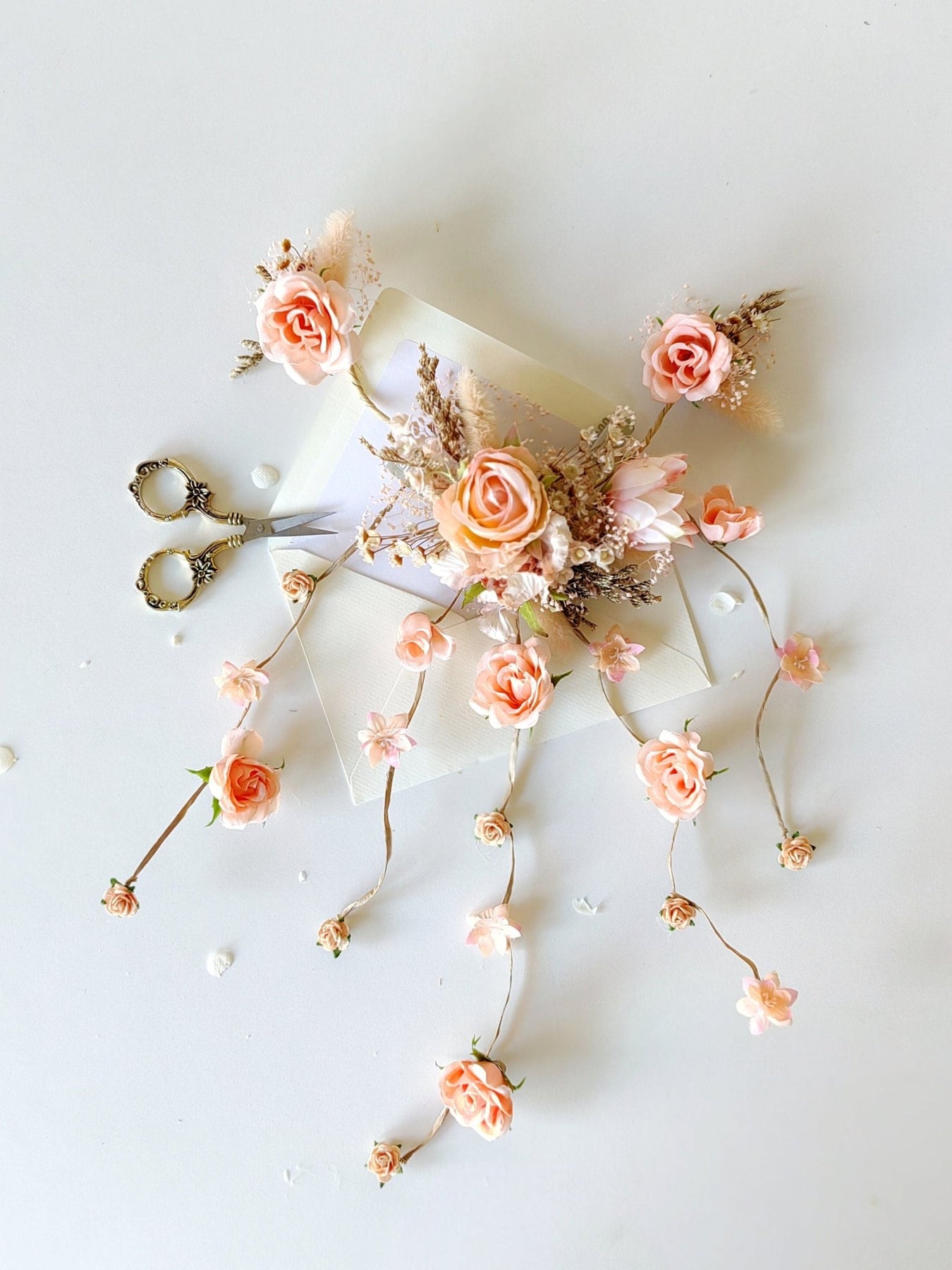Blush Orange Flower Bridal Hair Vine: Wedding Hair Accessories – handmade floral hair accessory by magaela