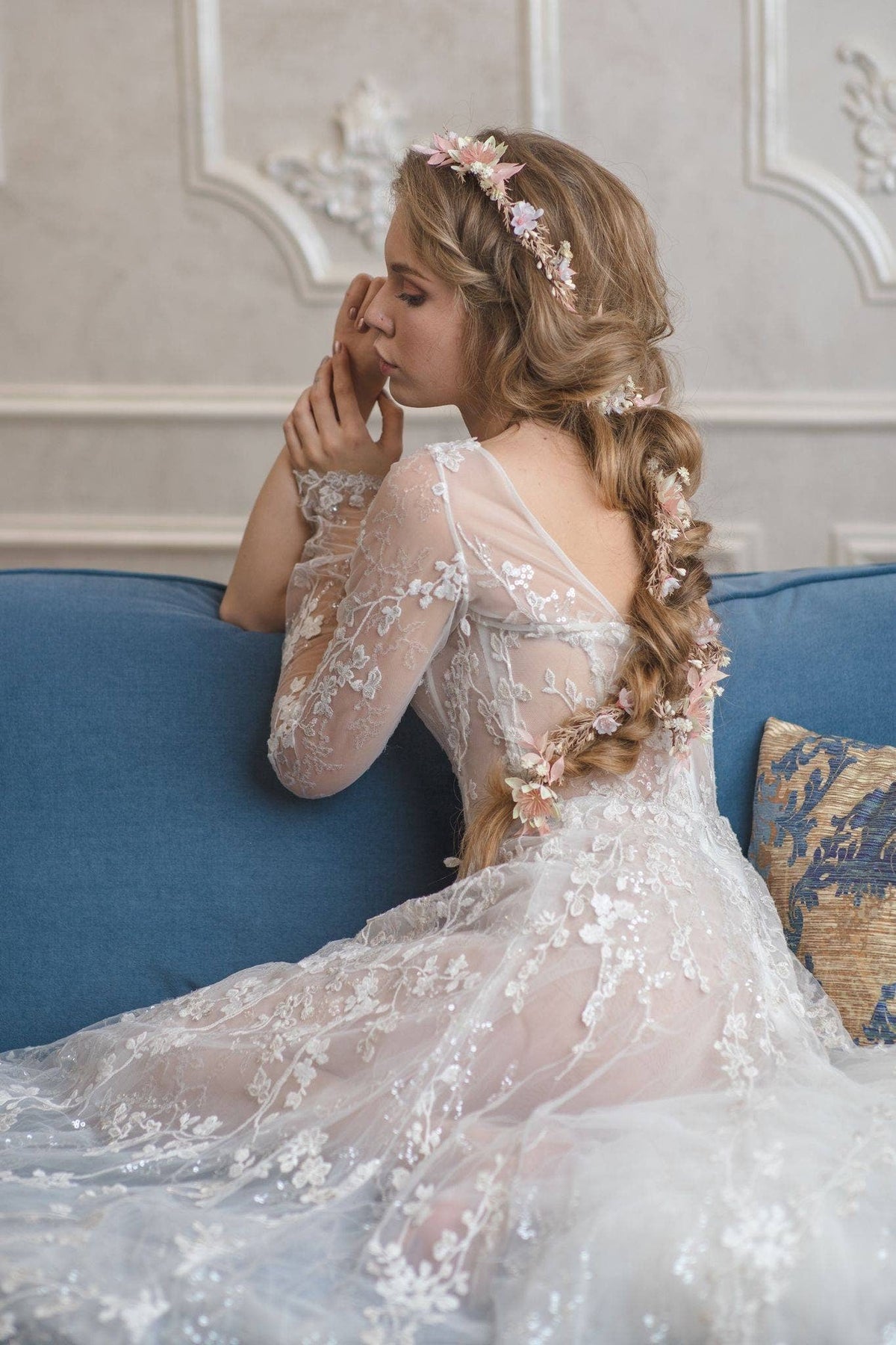 Blush wedding hair garland. It is bendable/shapeable to perfectly fit your hairstyle! :)
