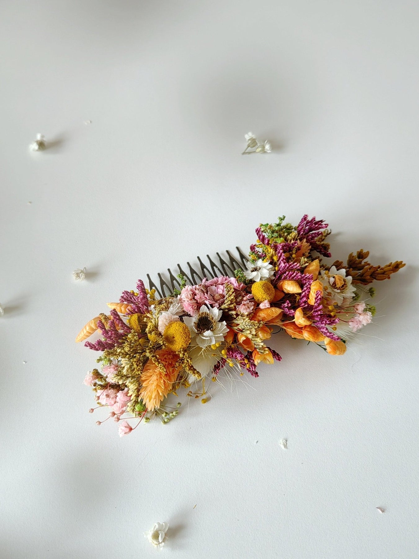 Burnt Orange Bridal Hair Comb: Preserved Flower Rustic Wedding Hair Vine – handmade floral hair accessory by magaela