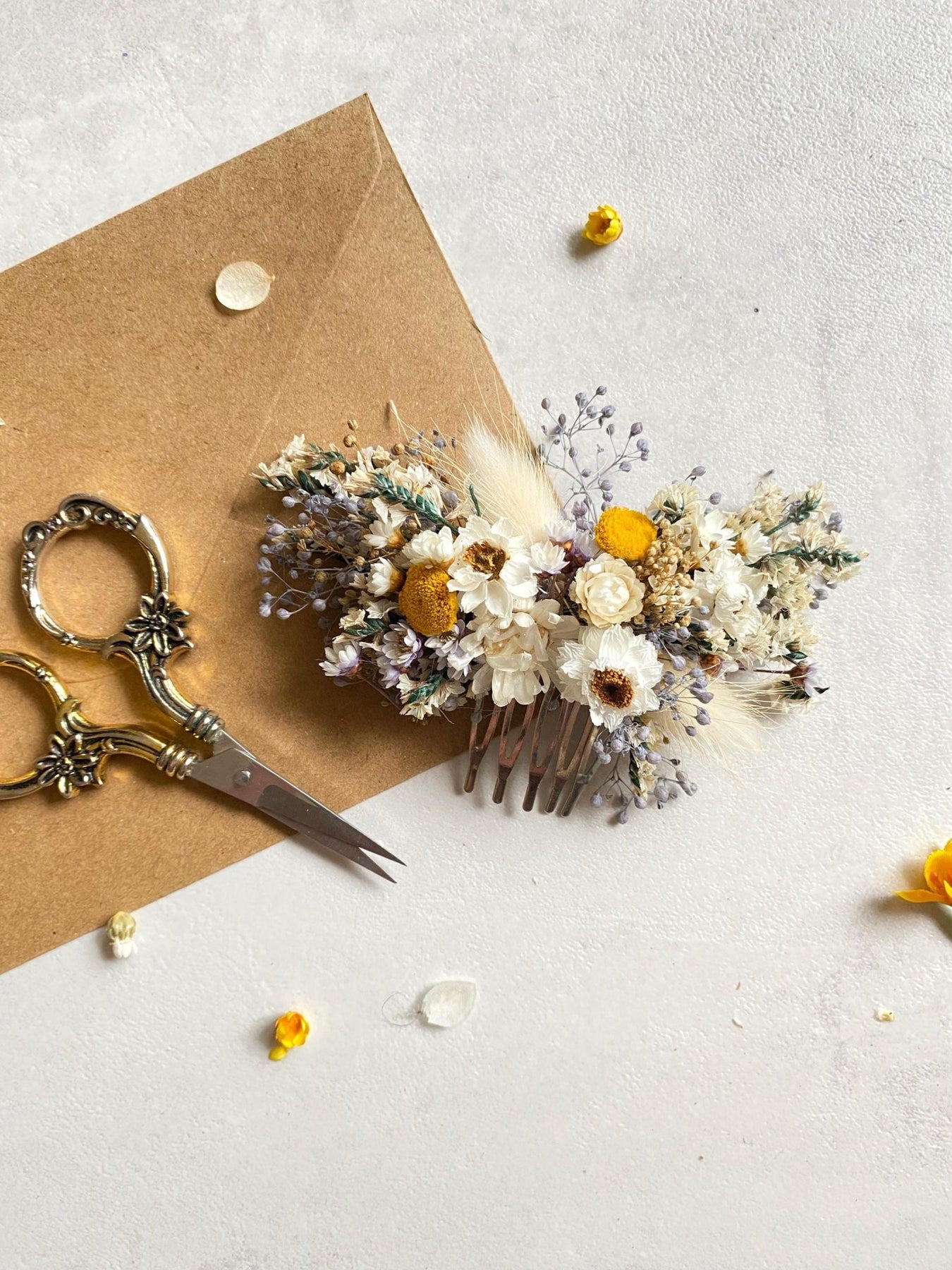 Dried Flower Hair Comb: Rustic Wedding Bridal Hair Clip – handmade floral hair accessory by magaela