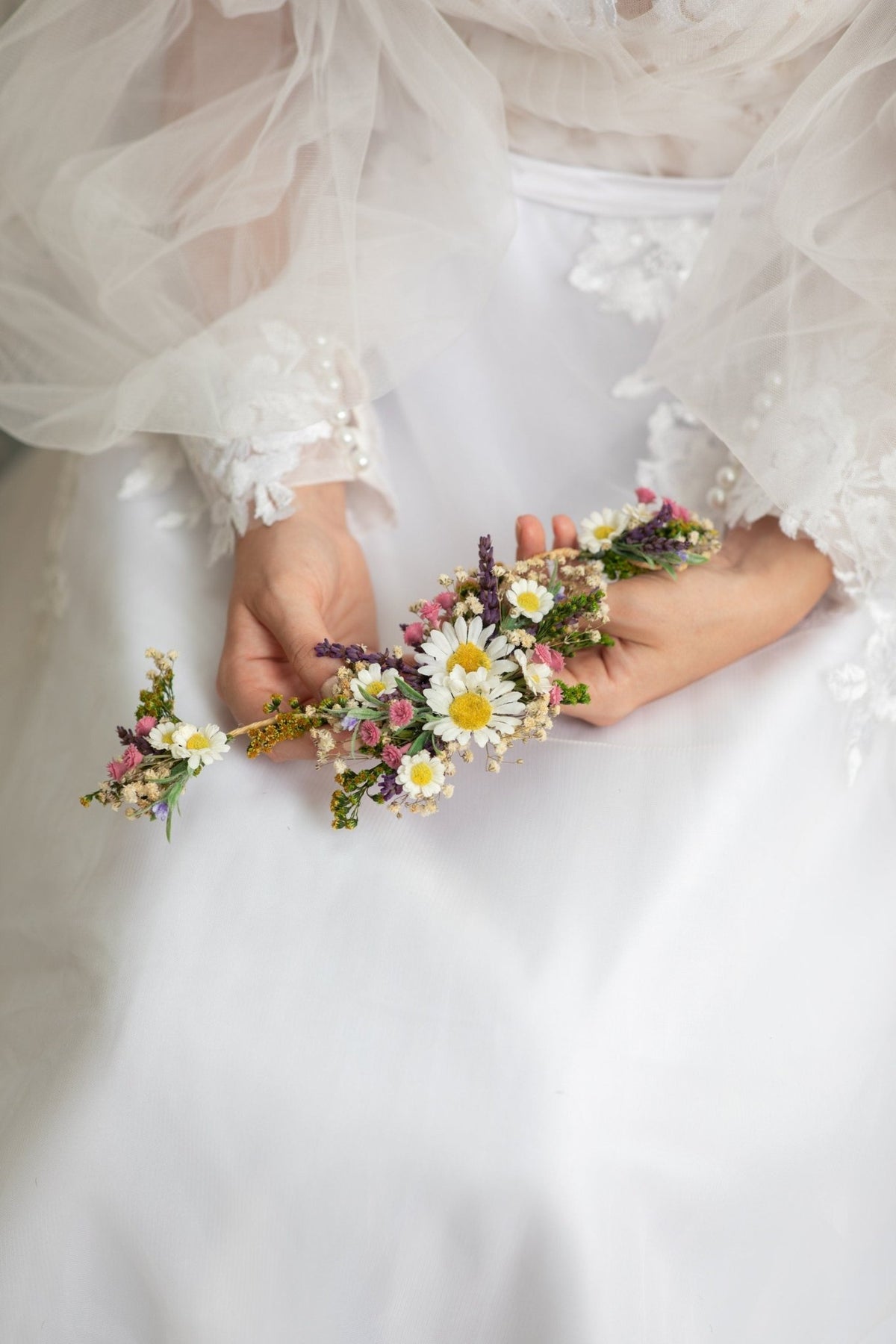 The flower hair vine s made of preserved and artificial flowers, grass, leaves, floristic tape, wire...