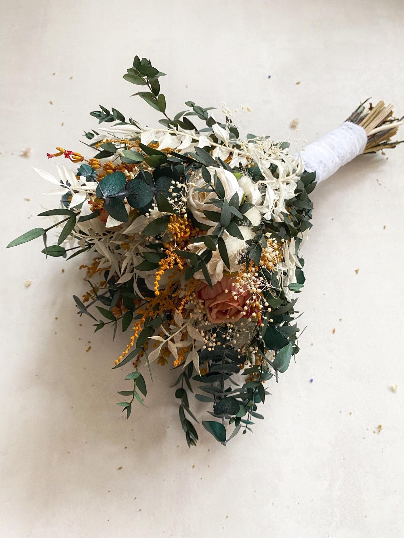 Earthy tones bridal bouquet, suitable for summer or autumn rustic wedding