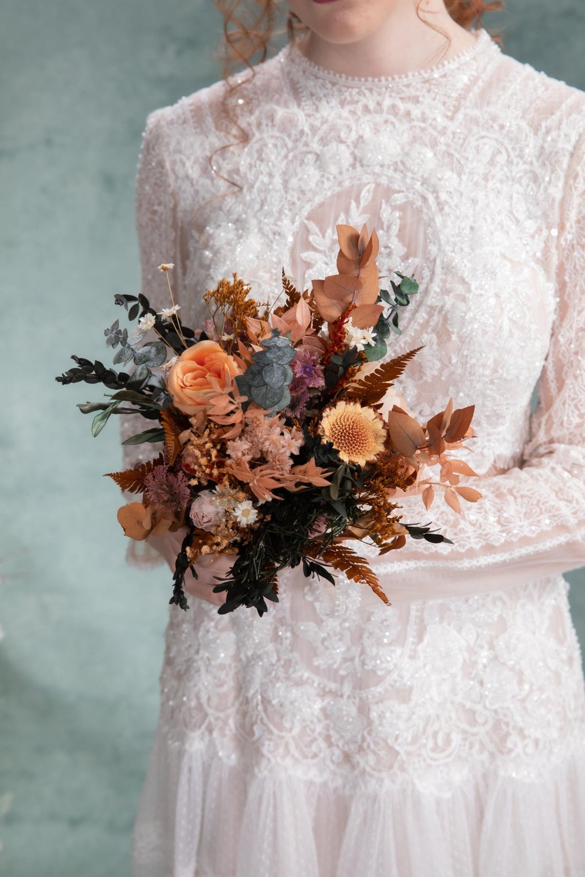 Rustic Autumn Bridal Bouquet: Mocha Orange Eucalyptus Wedding
