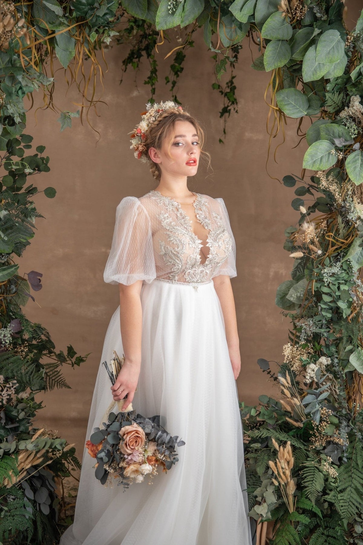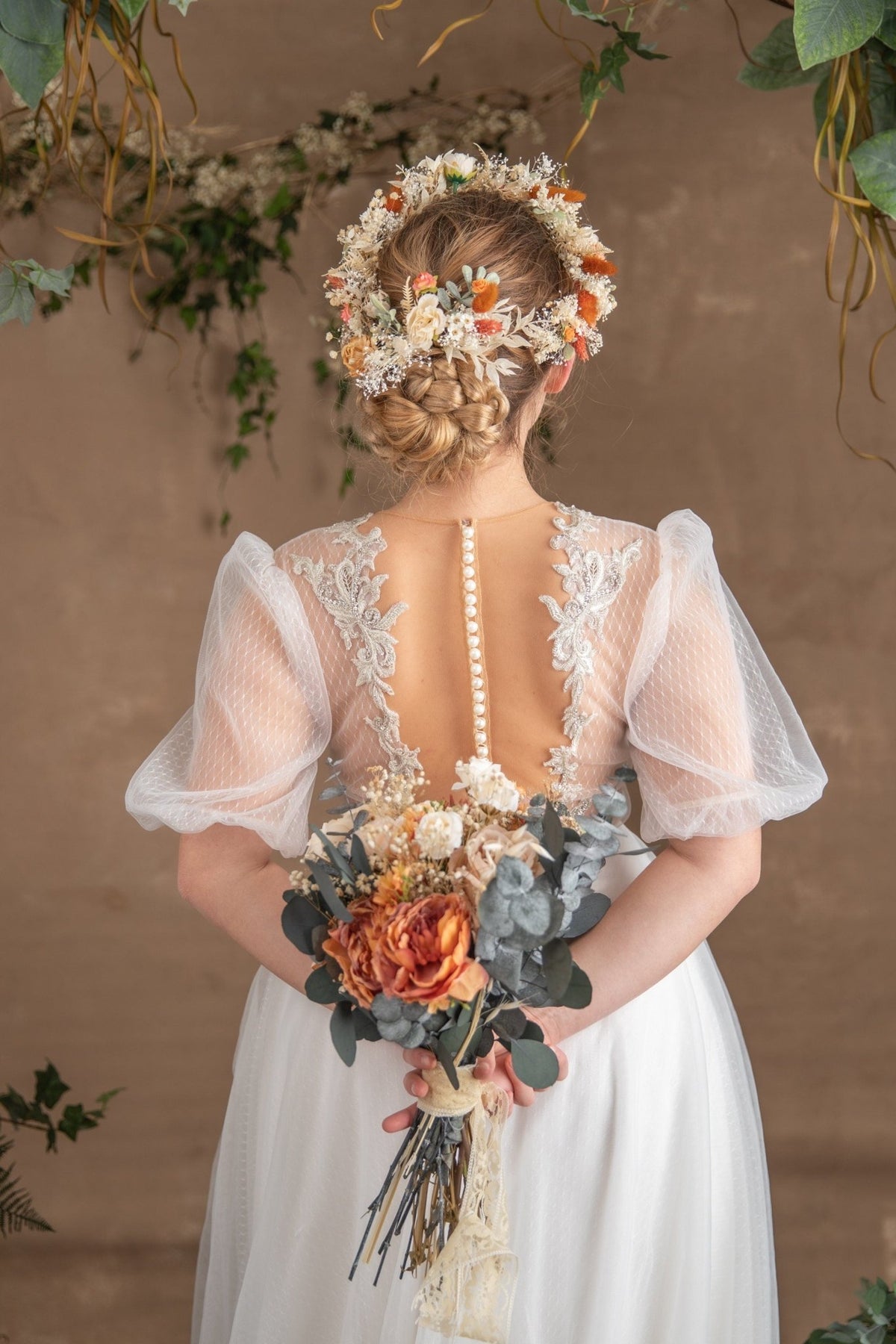 Rustic Orange Bridal Bouquet: Boho Summer Wedding Flowers – handmade floral hair accessory by magaela