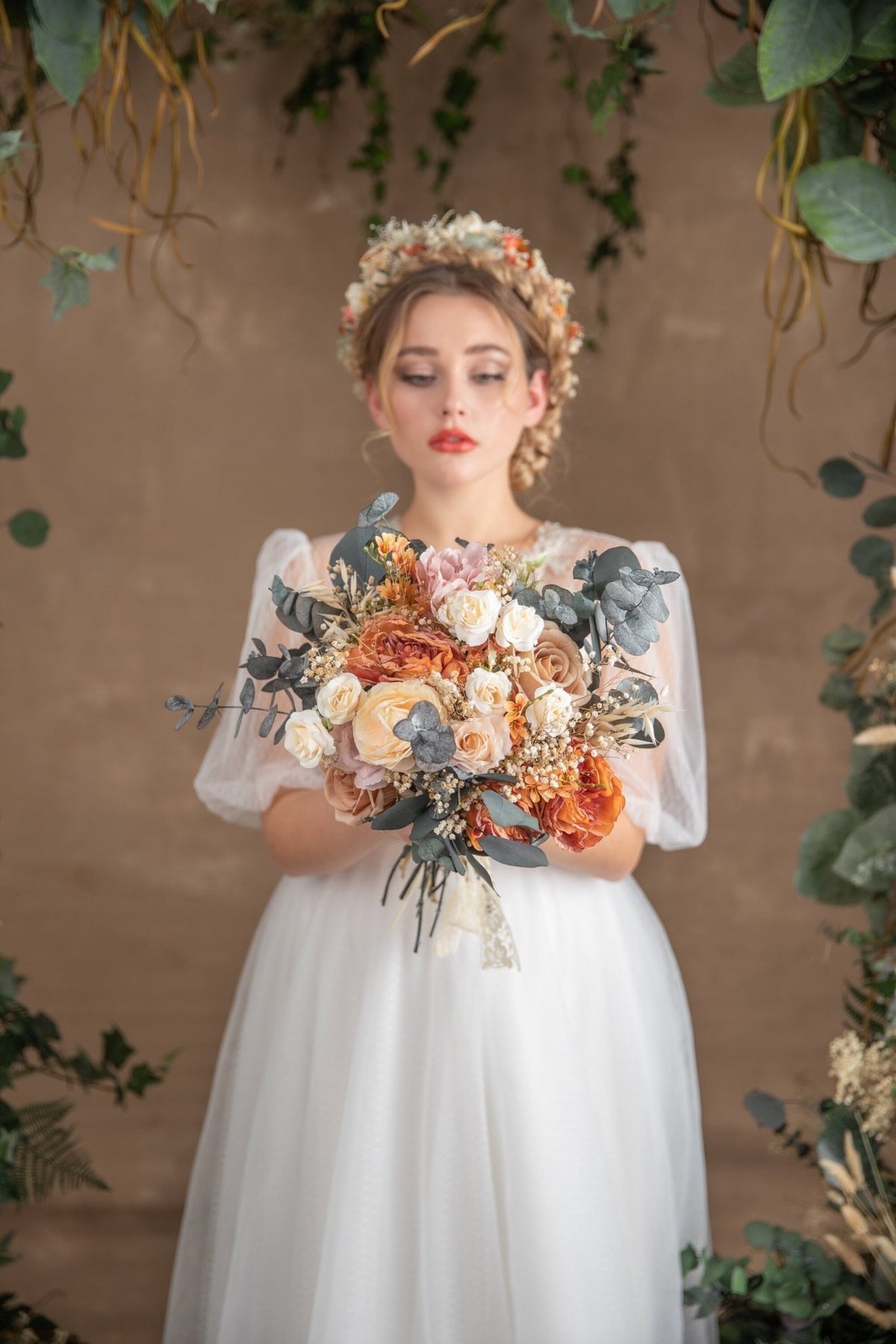 Rustic Orange Bridal Bouquet: Boho Summer Wedding Flowers
