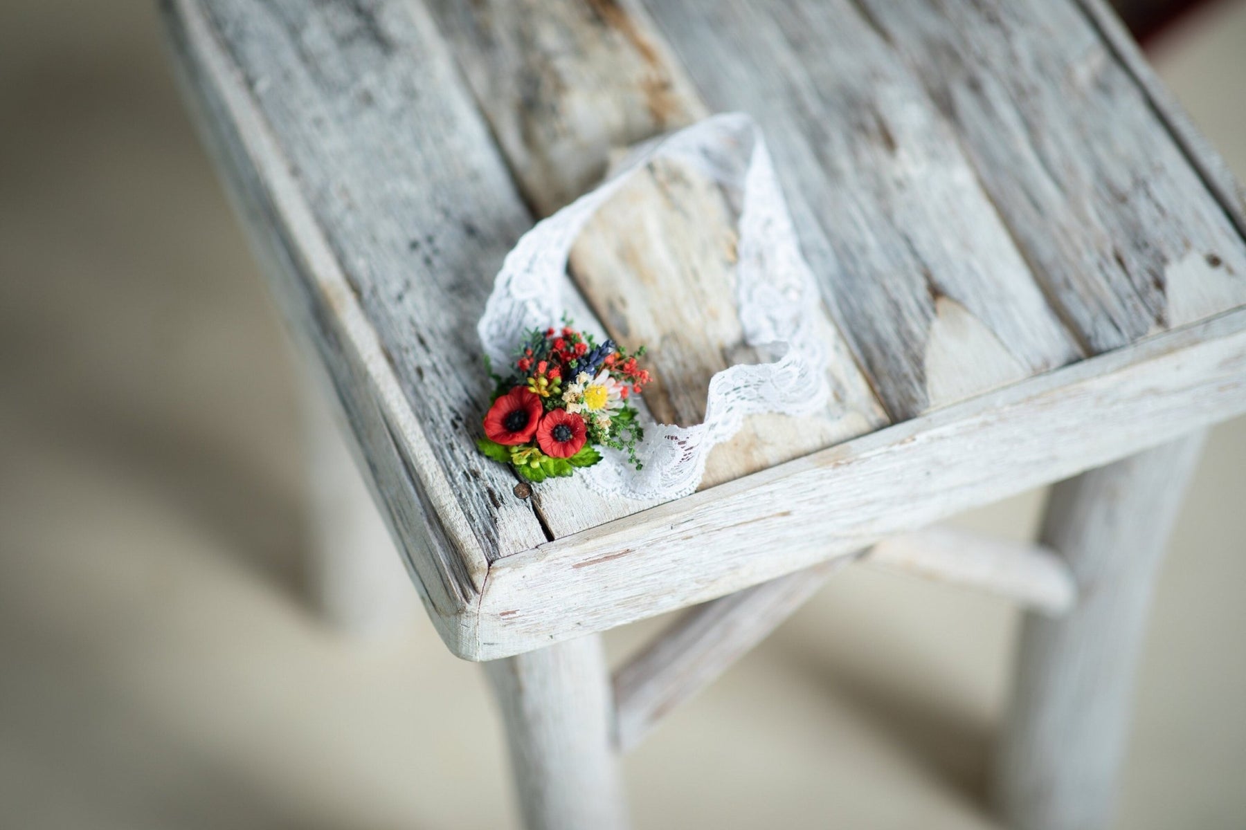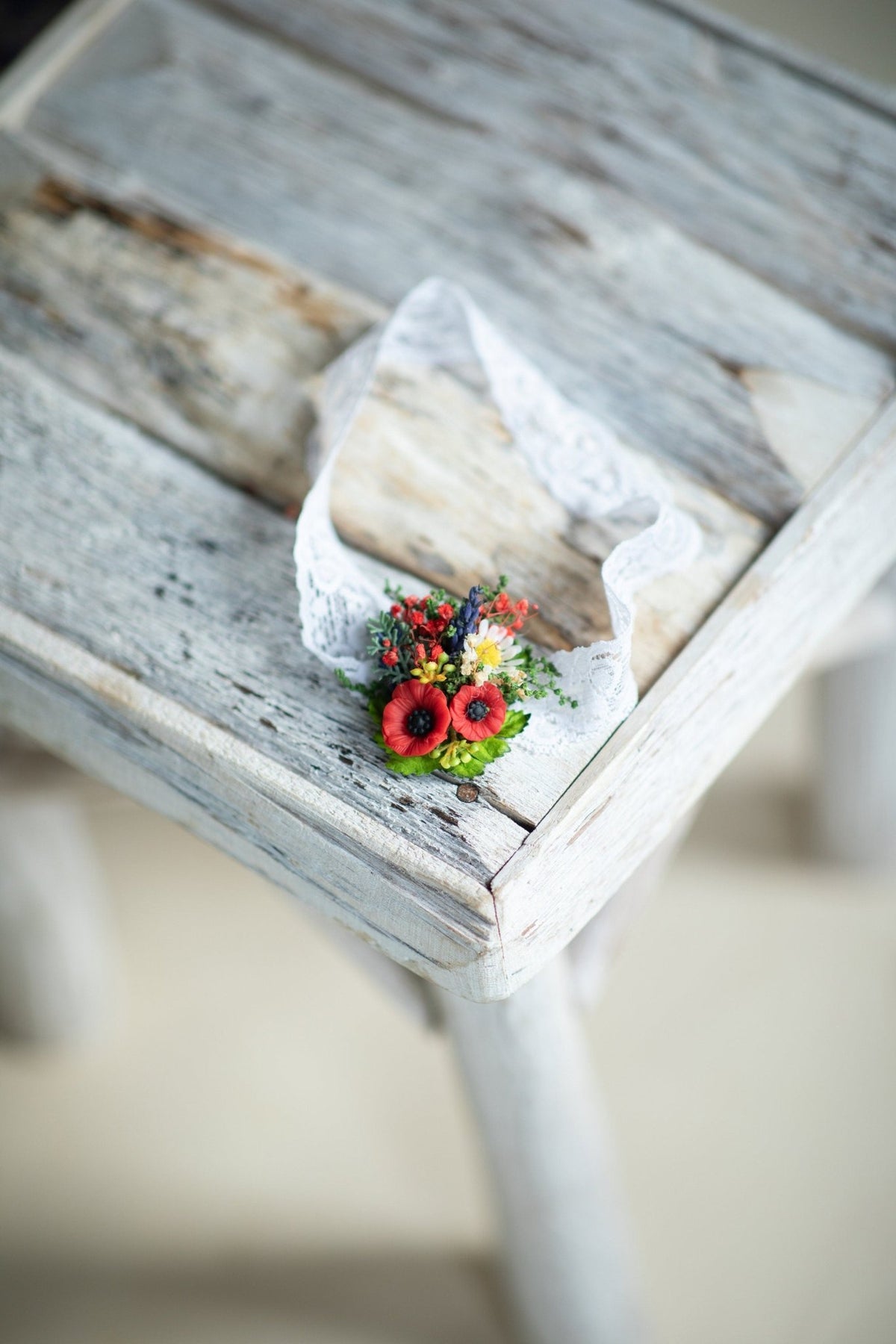 Poppy Flower Bridal Garter: Red & White Lace Wedding Accessory – handmade floral hair accessory by magaela