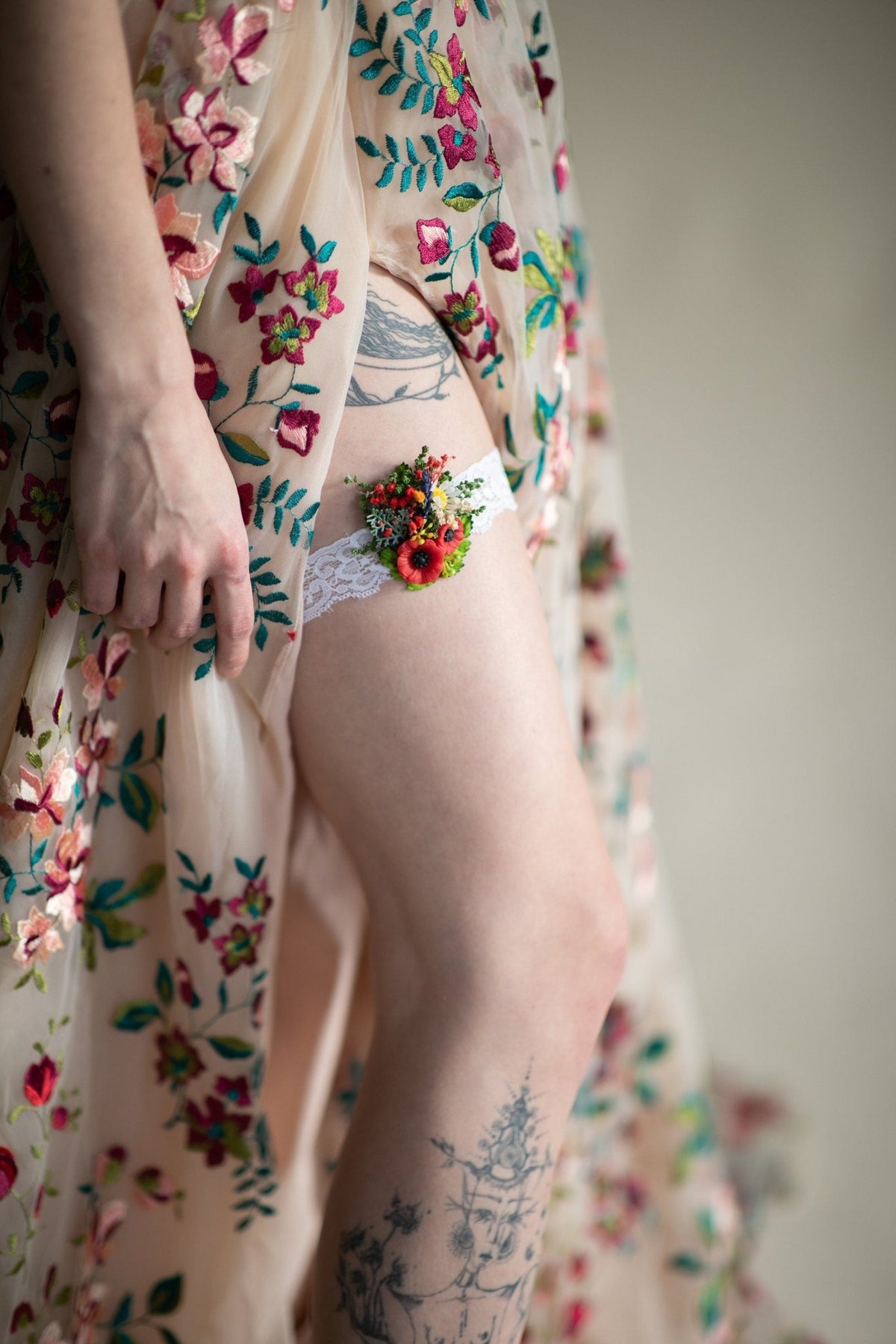 Poppy Flower Bridal Garter: Red & White Lace Wedding Accessory