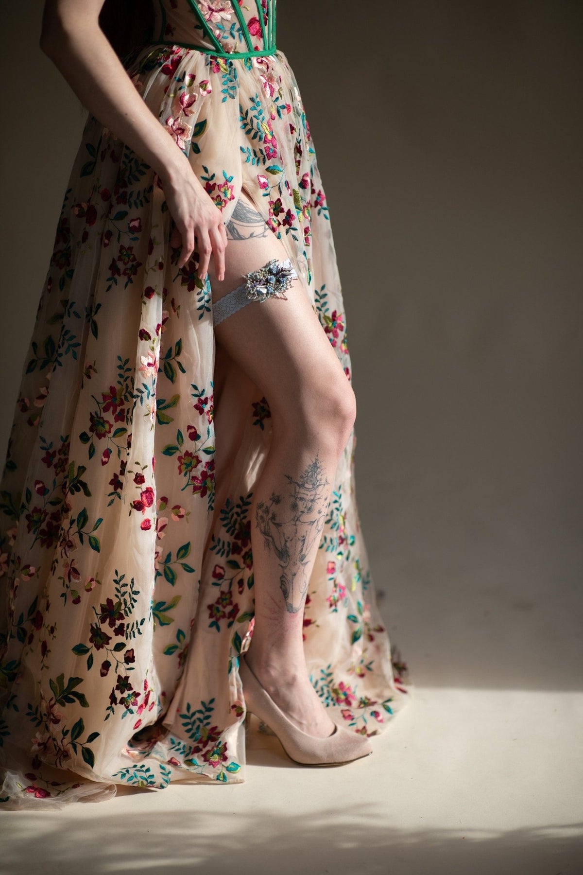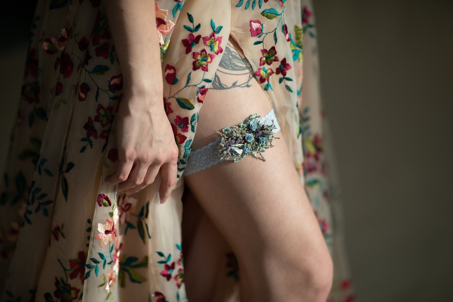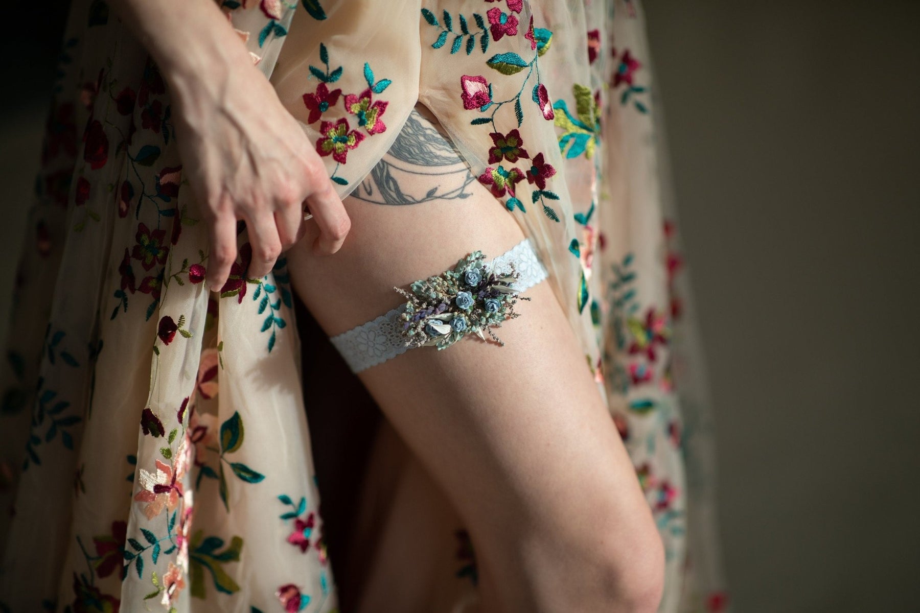 Blue Rose Wedding Garter: Floral Lace Bridal Accessory