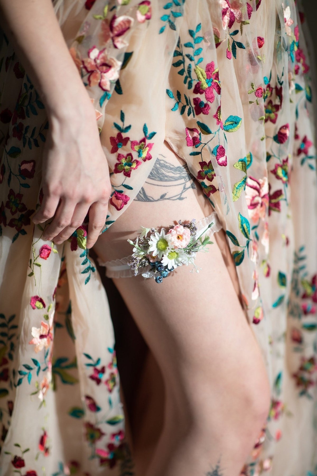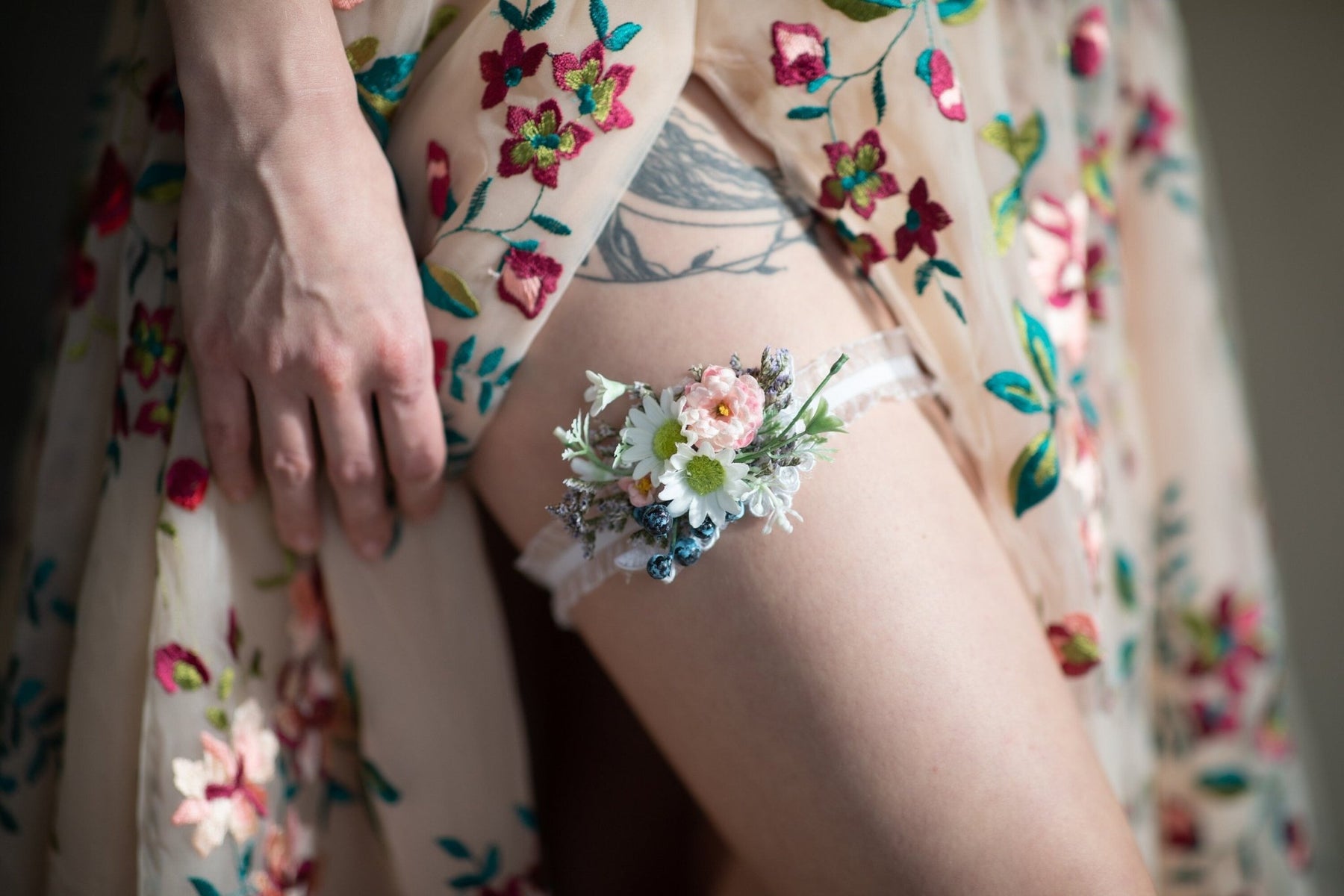 Floral Wedding Garter: Customisable Lace, Blueberries, Pale Pink