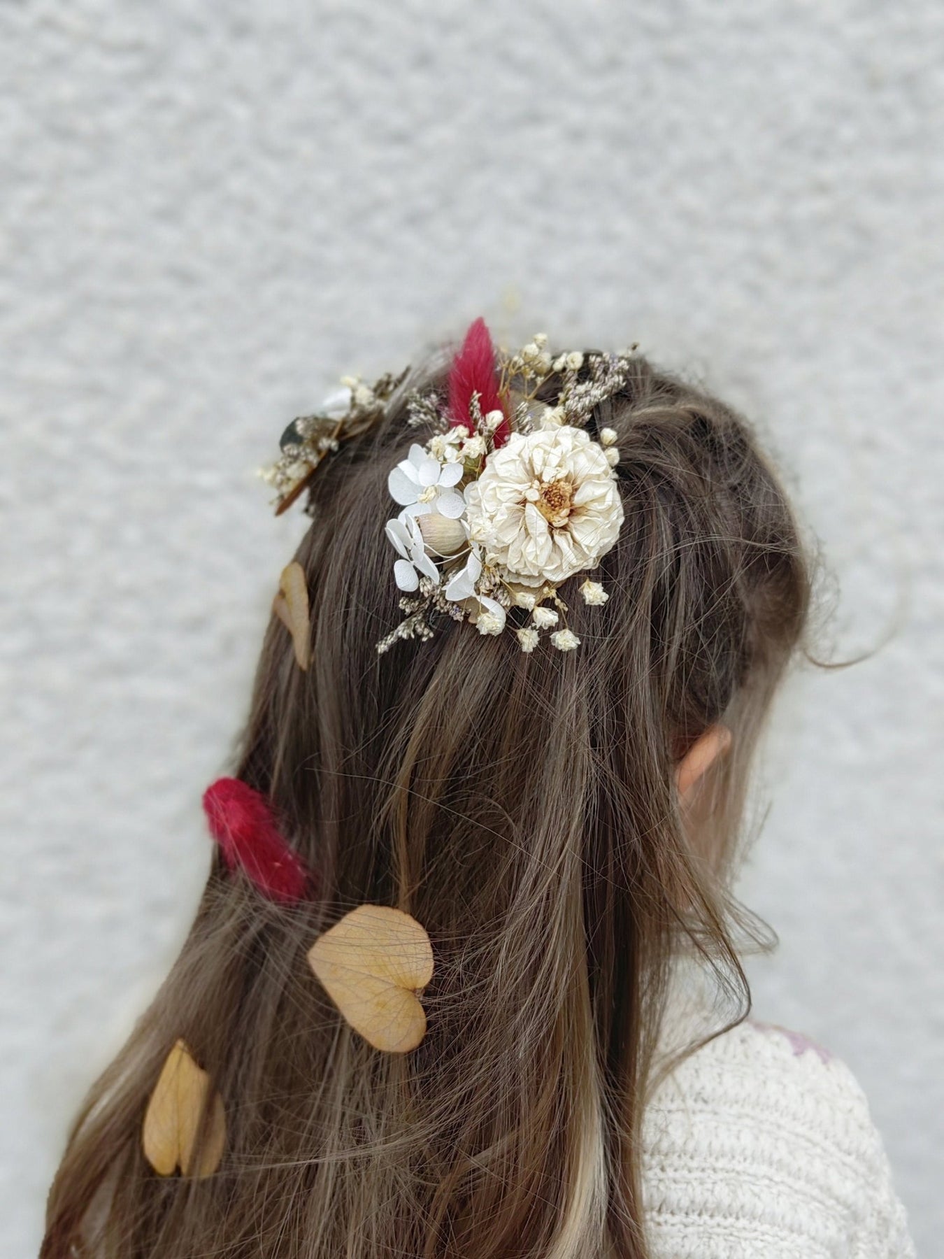 The hair clips are made of preserved and dried material and other trinkets used for arranging :) It's a fragile natural material, it can fall slightly, especially during transport. But it is not a fault of the product