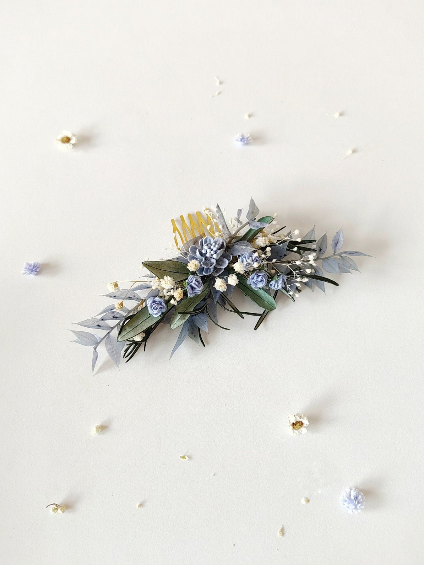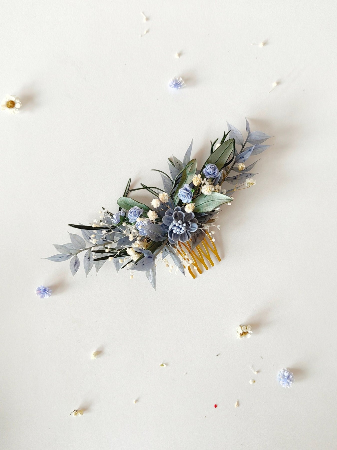 Baby Blue Flower Bridal Hair Comb: Romantic Greenery Hairpiece – handmade floral hair accessory by magaela