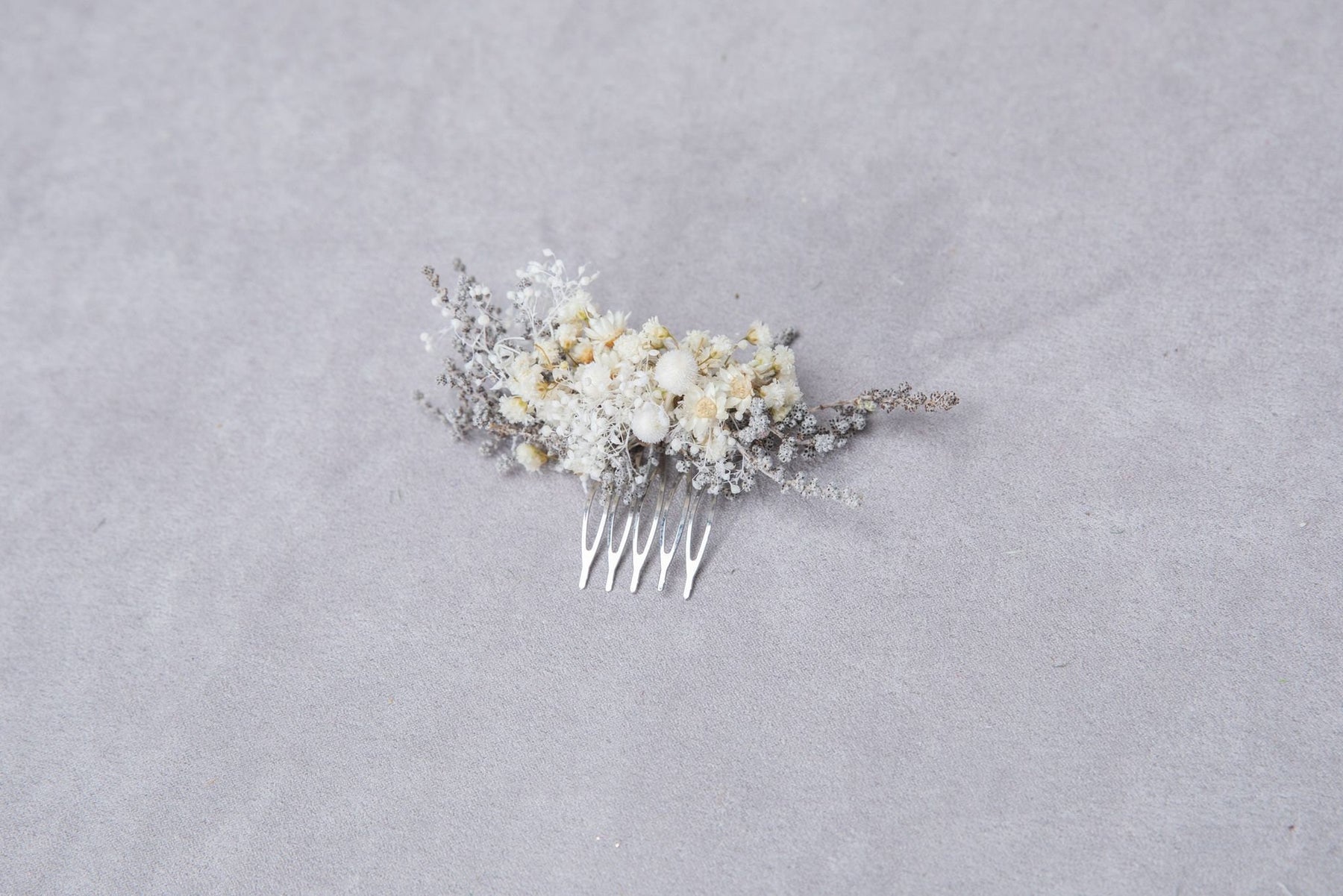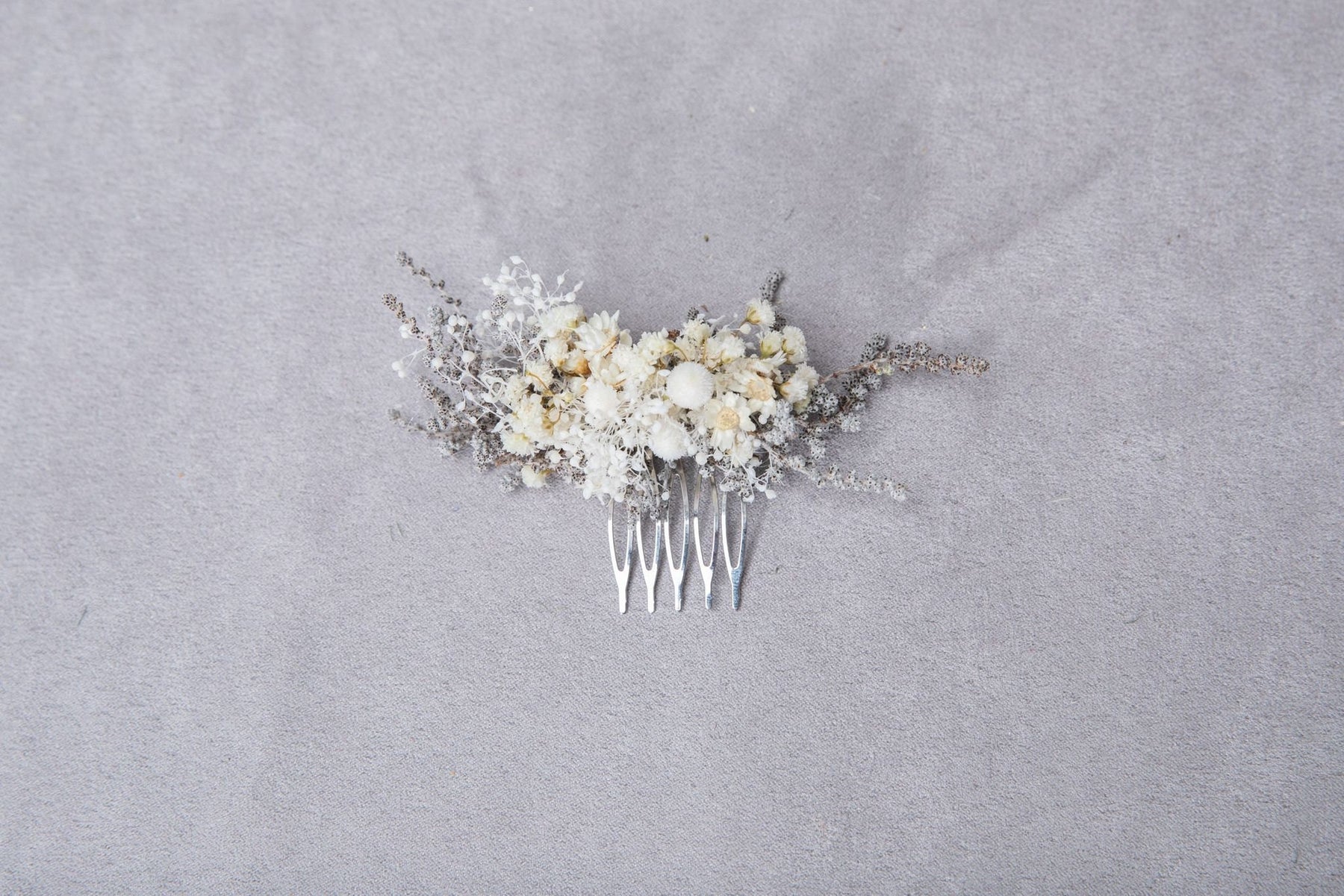Ivory Baby's Breath Bridal Comb: Dried Flower Wedding Hair Accessory – handmade floral hair accessory by magaela