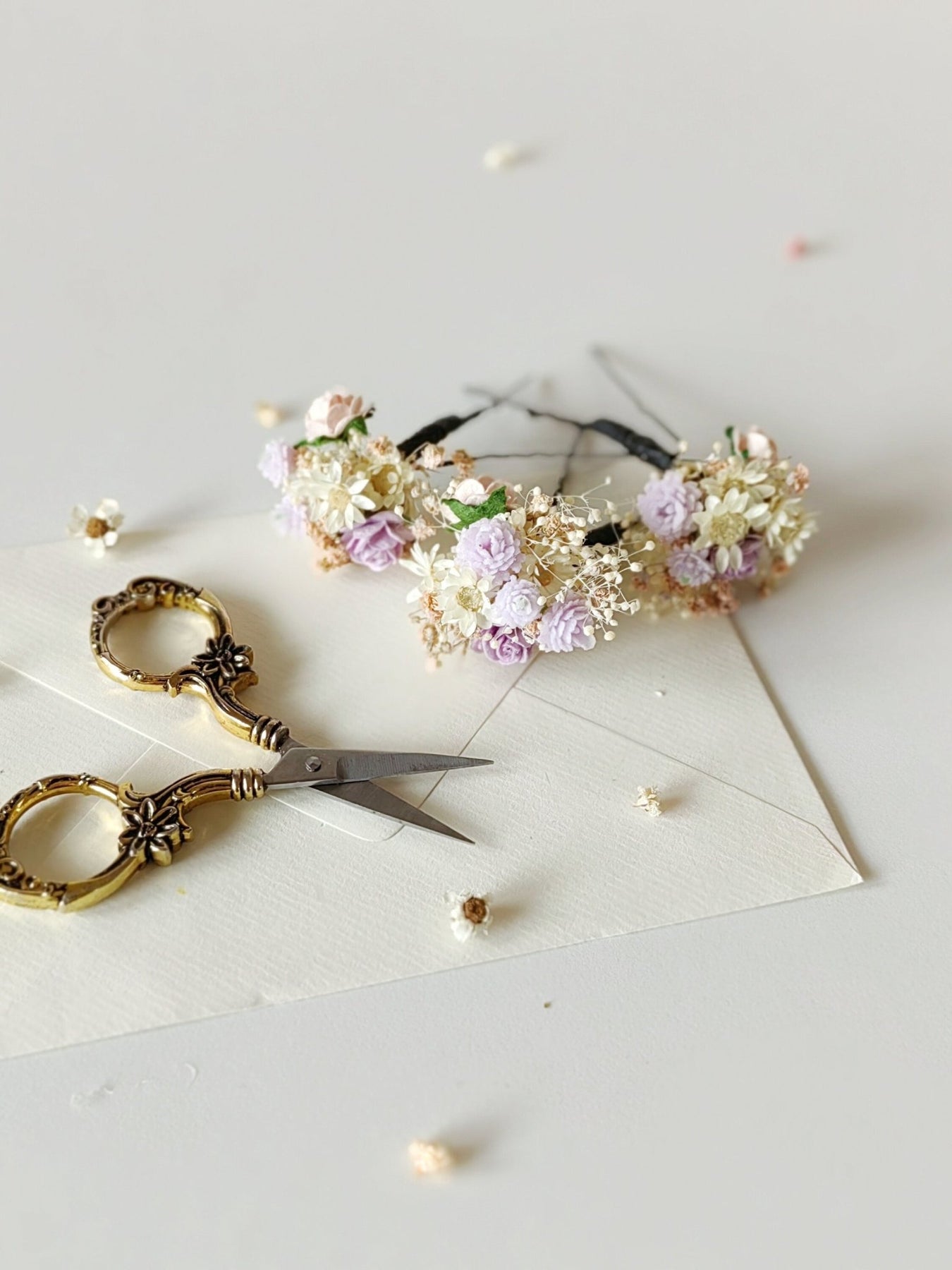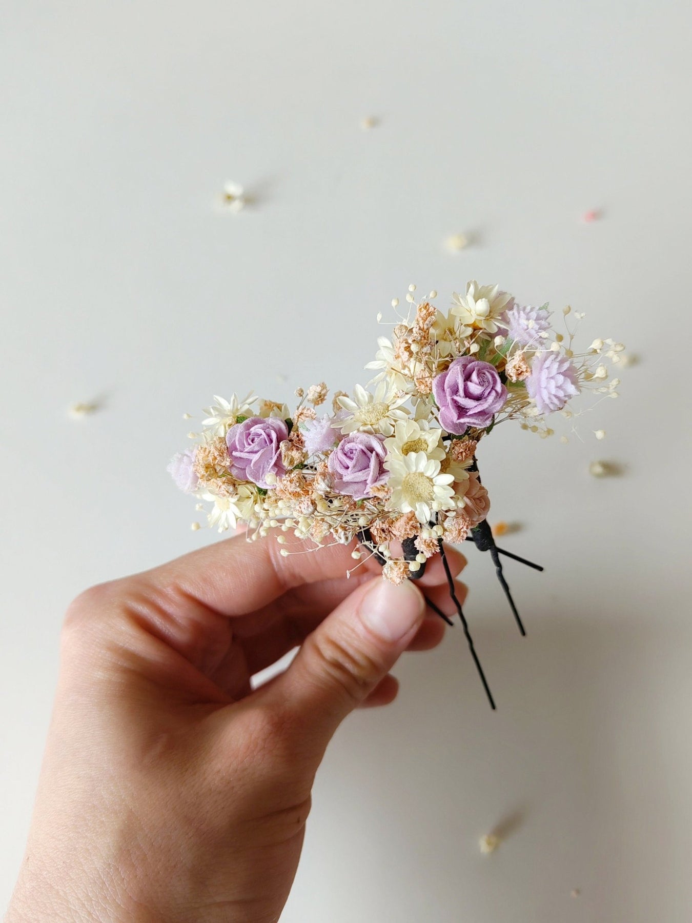 Romantic flower hairpins in pastel pink, purple and cream tones. Perfect for weddings, other celebrations or everyday look.