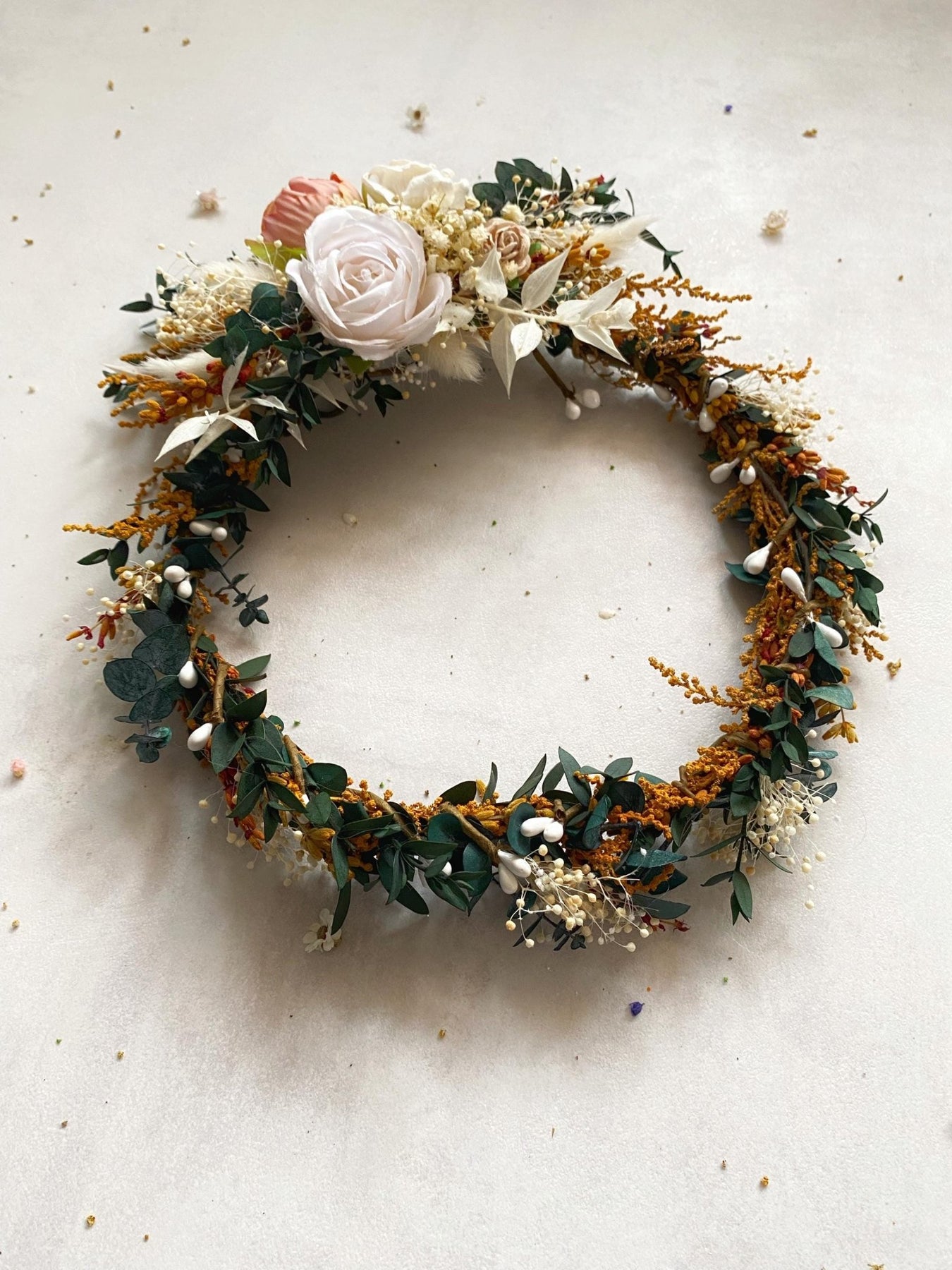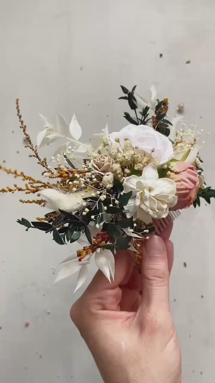 Rustic Wedding Flower Crown with Hair Comb In Earthy tones – handmade floral hair accessory by magaela