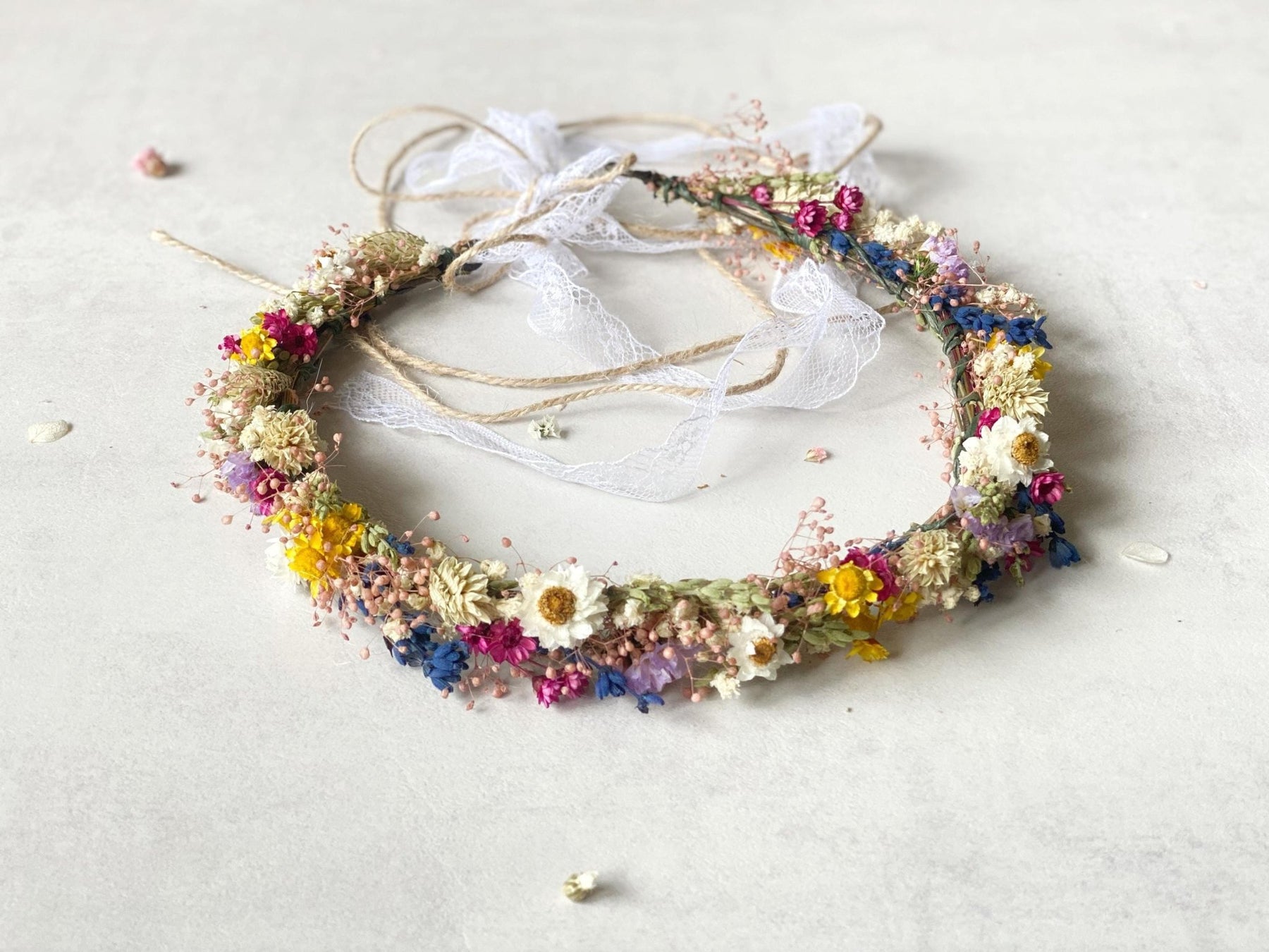 Preserved Flower Bridal Wreath: Rustic Cottagecore Hair Crown – handmade floral hair accessory by magaela