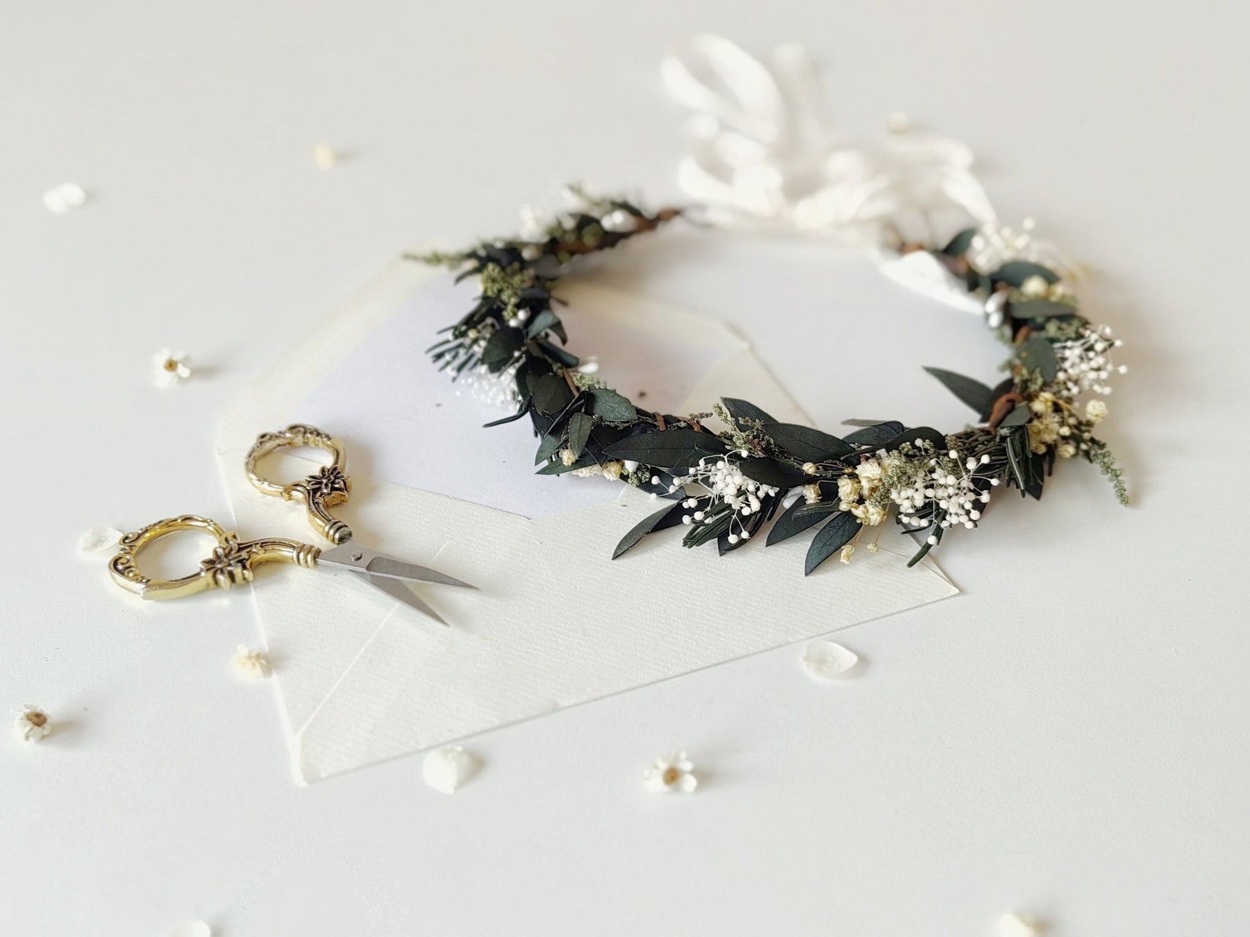 Eucalyptus Wedding Floral Set: Olive, Rosemary, Baby's Breath – handmade floral hair accessory by magaela