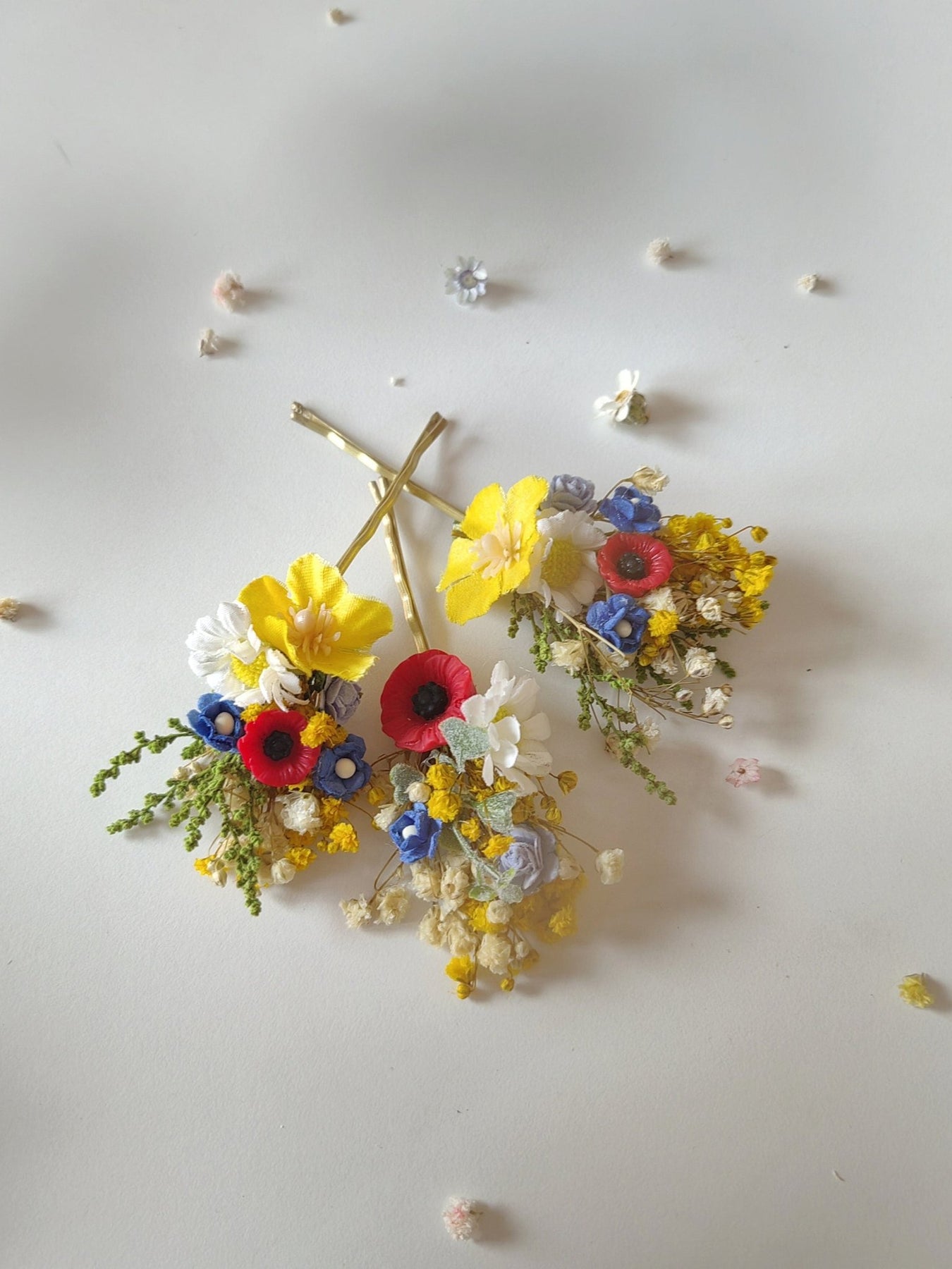 Folk Meadow Flower Hair Comb & Pins: Poppy Daisy Wedding Accessories
