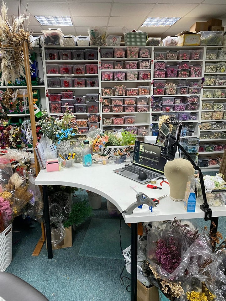 So I started in our living room, making floral hairpieces by hand.