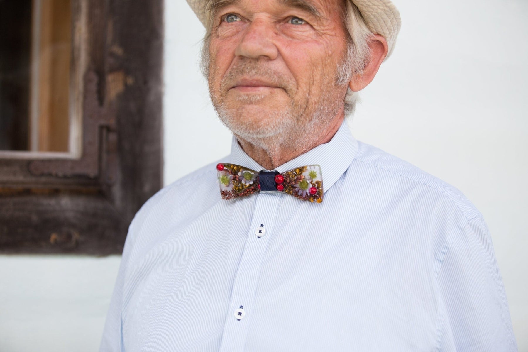 Our handmade floral bow ties are created in collaboration with Chenya, combining traditional craftsmanship with botanical design. Each piece is made individually, ensuring that no two bow ties are ever the same.