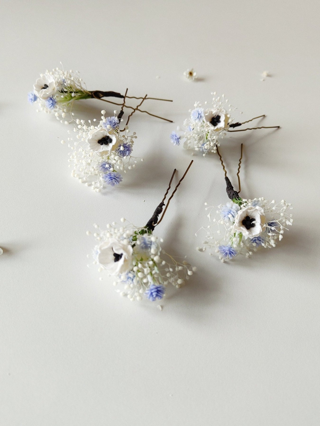 Anemone Flower Hair Pins: Baby Blue Wedding Hair Accessories