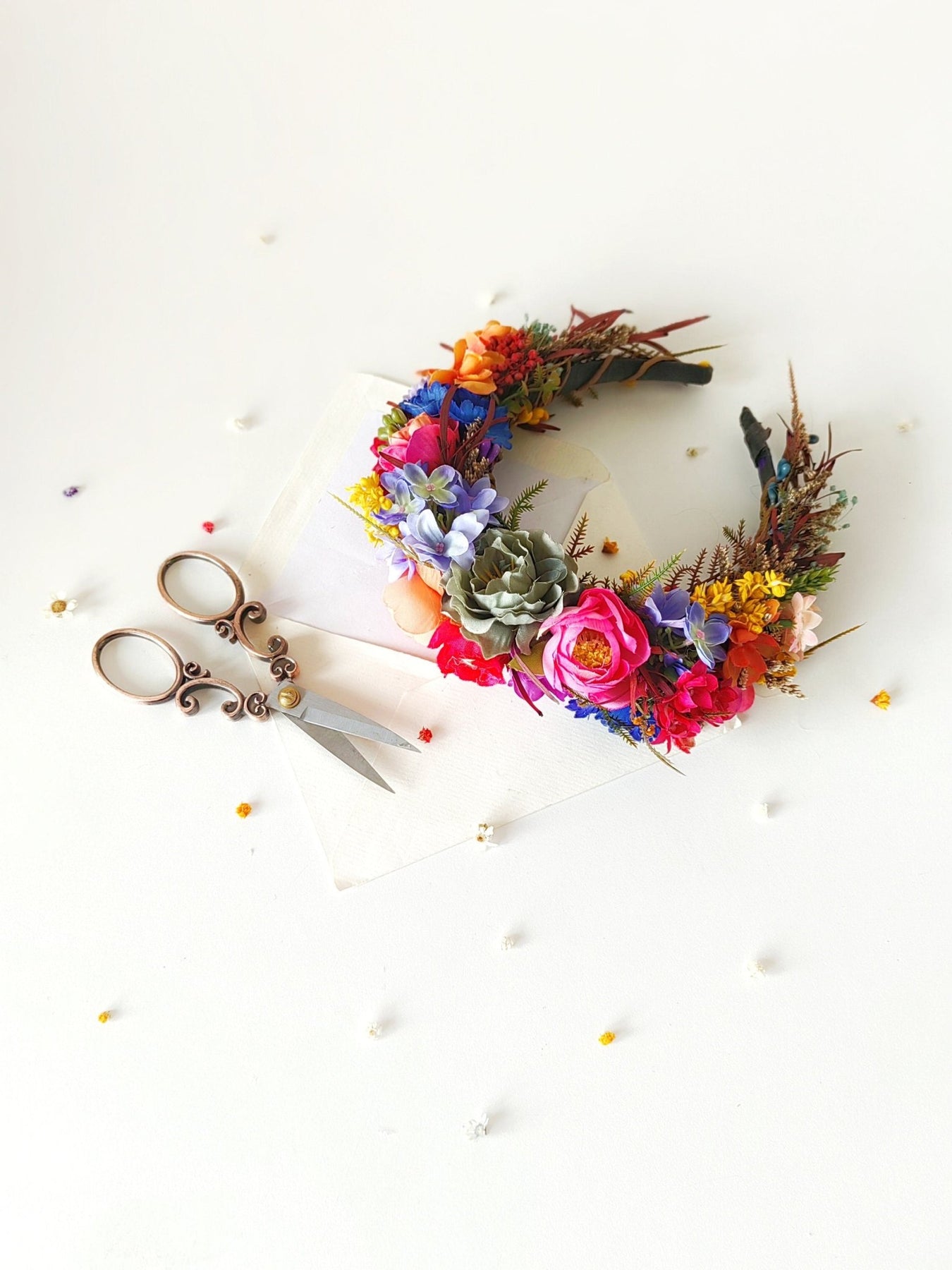 Floral Bridal Headband: Colorful Wildflower Frida Style Headpiece