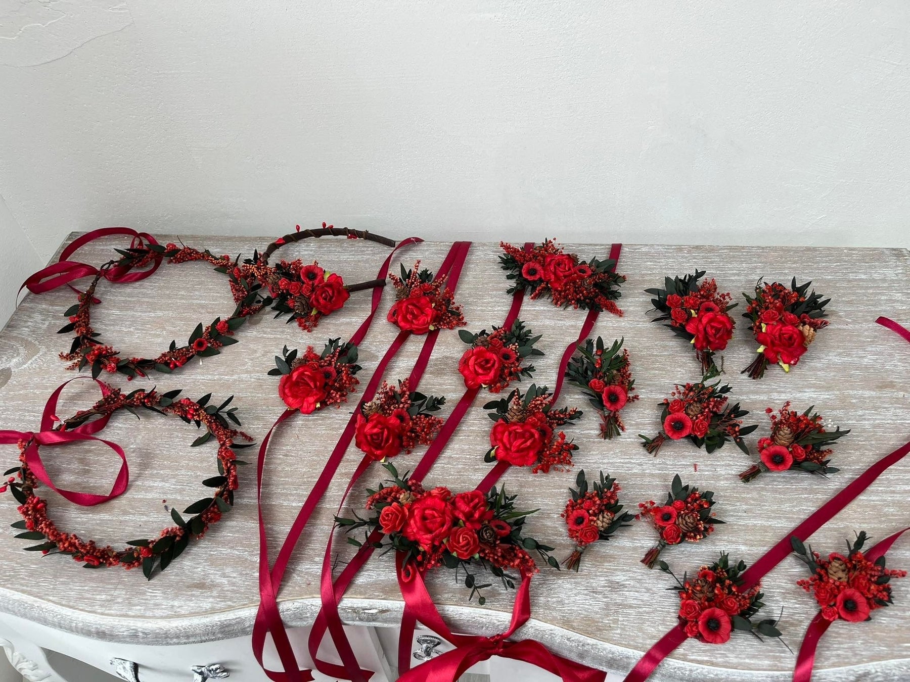 You will get photos of the finished product before shipping. Minor changes to the product are possible, but please describe your wishes as detailed as possible. If there is a colour or flower that you don't like let us know before we start to work on your products. If the product needs to be remade completely (from scratch), extra fee applies.