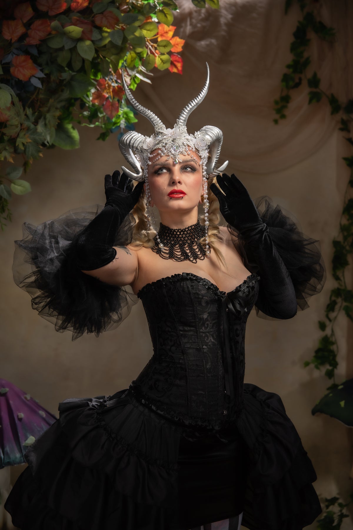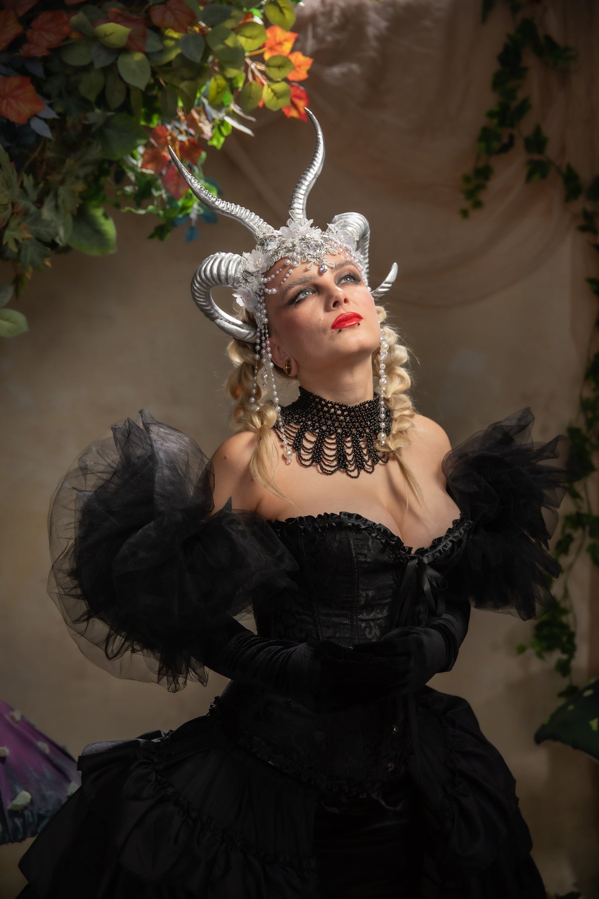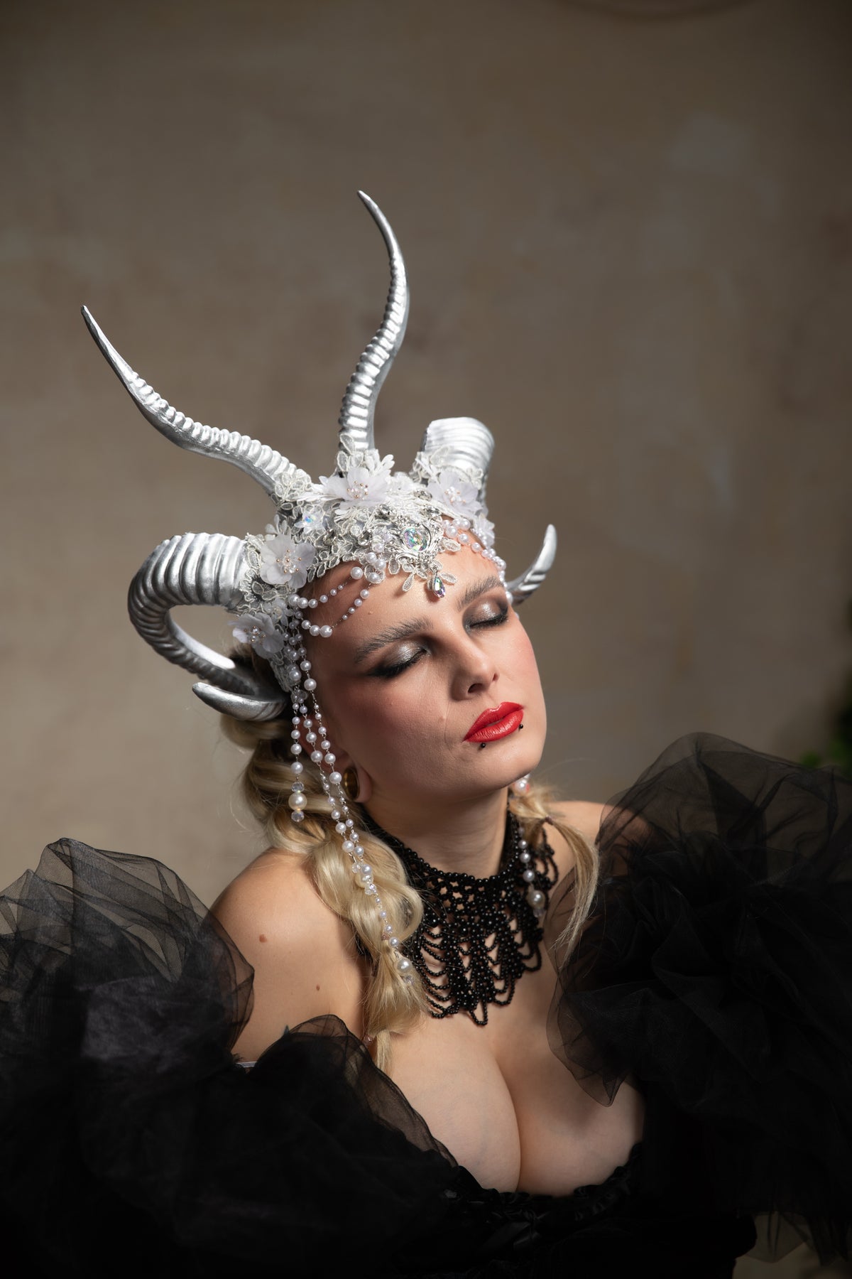 Glam silver horns crown: magical accesory for fantasy ball