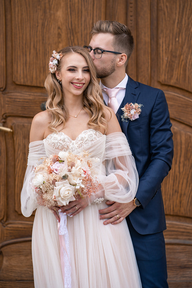 Romantic flower hair crown in pastel tones