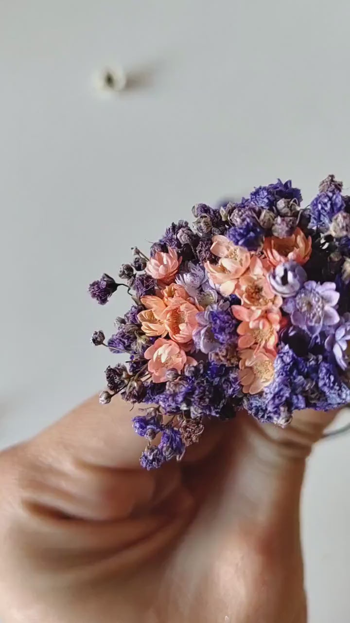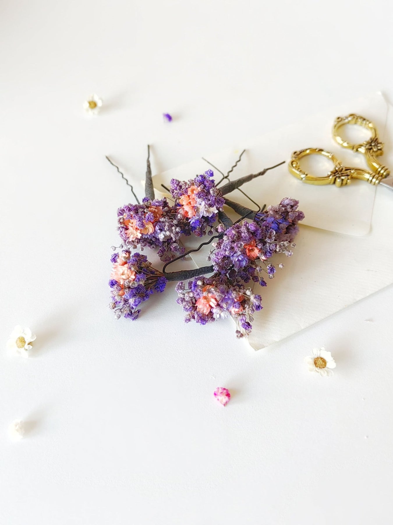 Prírodné fialové a ružové sušené sponky do vlasov. Ideálne na svadby, iné oslavy alebo na každodenný outfit.