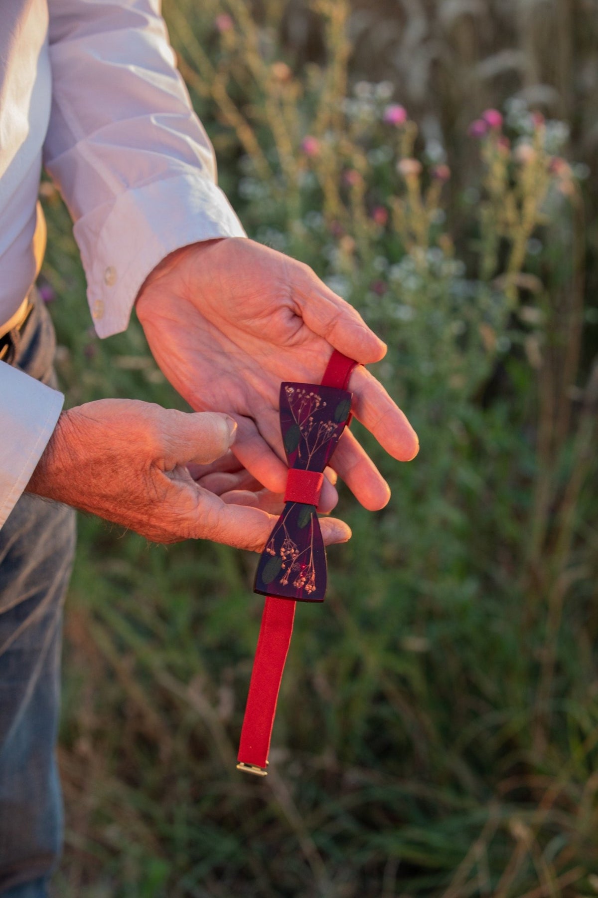 Chenya, moja kamarátka z univerzity, vyrába neuveriteľne krásne pánske motýliky. Raz sme sa stretli a asi viete, ako to skončilo... začali sme novú spoluprácu :) Chenya design pripravila pánske svadobné motýliky, ktoré ladia s vašimi obľúbenými produktmi z našej dielne. Motýliky sú vyrobené z dreva a kvetov použitých v našich produktoch, ktoré sú zapustené do živice. Každý kus je originál, zapínanie je ručne šité a každý motýlik je brúsený. Drobné nedostatky, ktoré vzniknú, len prispievajú k kráse a originalite produktu.