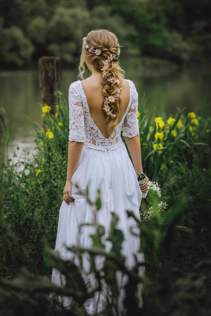 Pletenec je vyrobený z textilných kvietkov, lístkov, trávy, drôtiku, floristickej pásky a iných drobností určených k aranžovaniu. Drôtik je ohybný a flexibilný, viete si ho zamotať do vlasov.