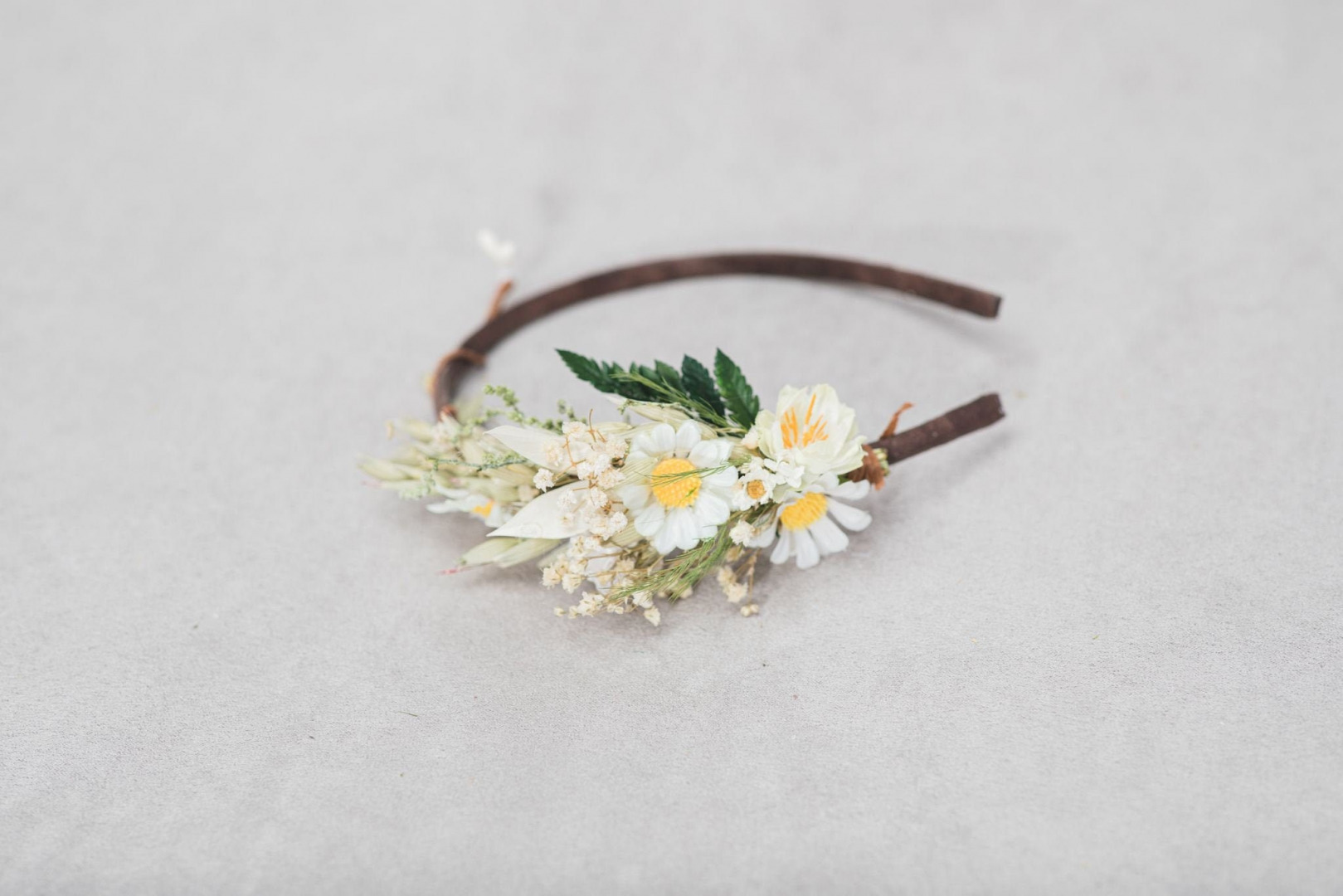 Čelenka je vyrobená z textilných kvietkov, lístkov, trávy a iných drobností určených k aranžovaniu.