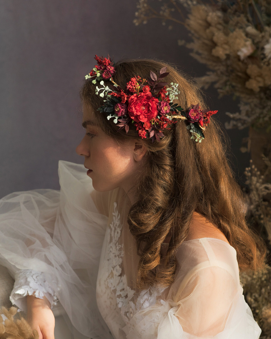 Red and burgundy hair vine. Perfect for brides or photoshoots.