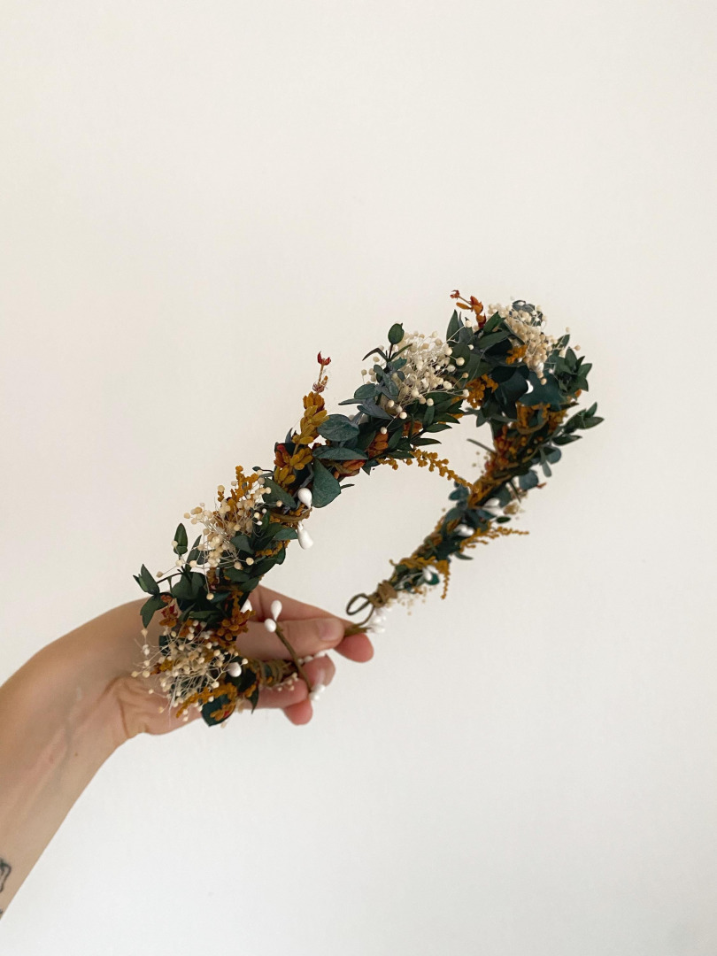 Bridal gentle flower wreath and boho bridal comb. Beautiful bridal hair set. You can wear together or separately. Price per setIt's made of artificial flowers in earthy tones, preserved material and other material used for arranging. ...