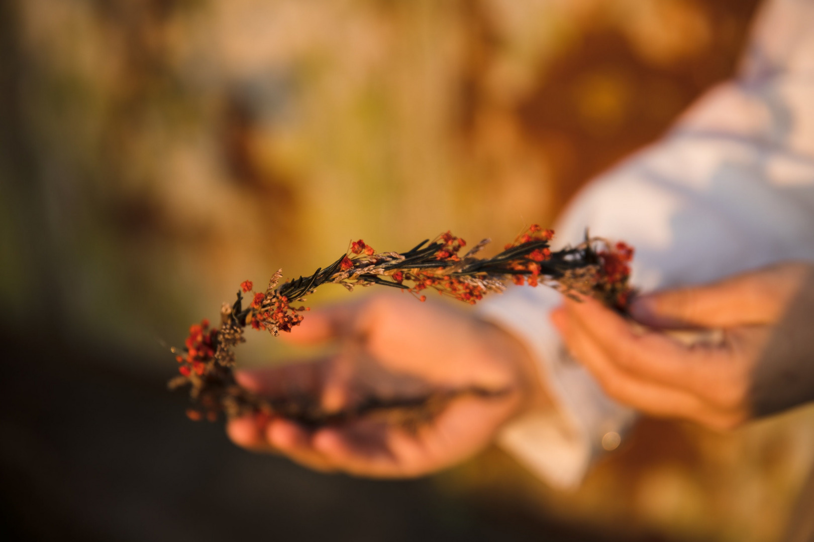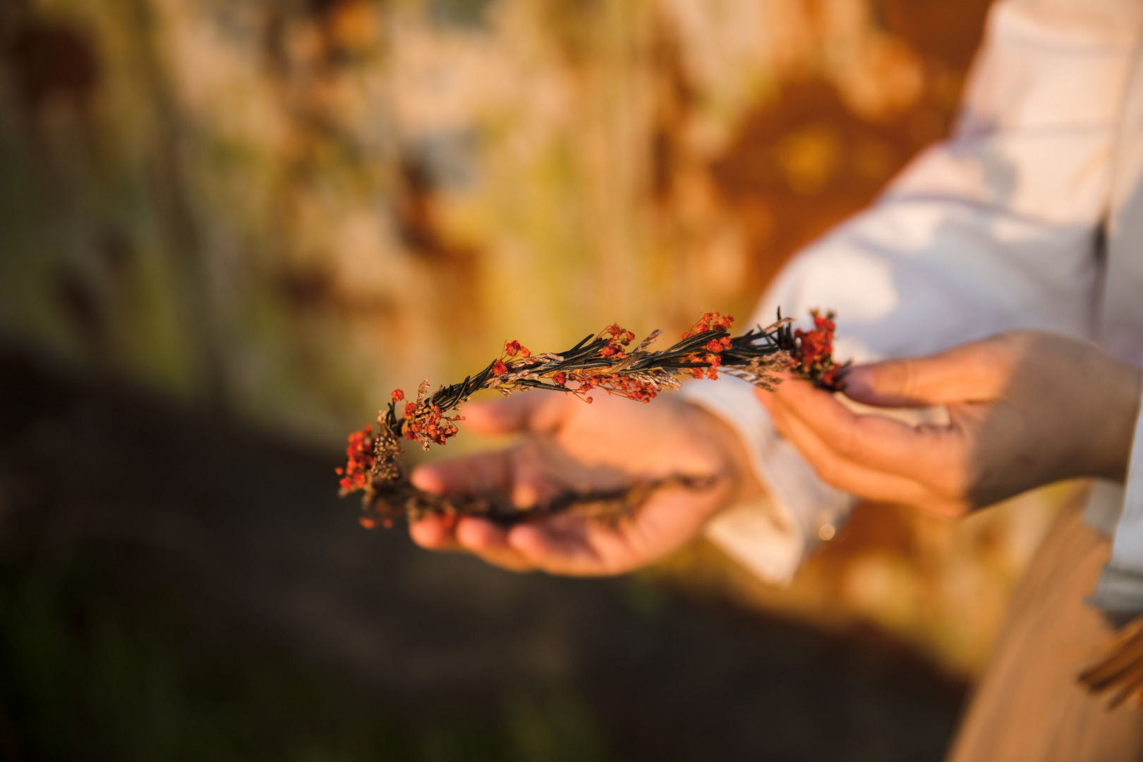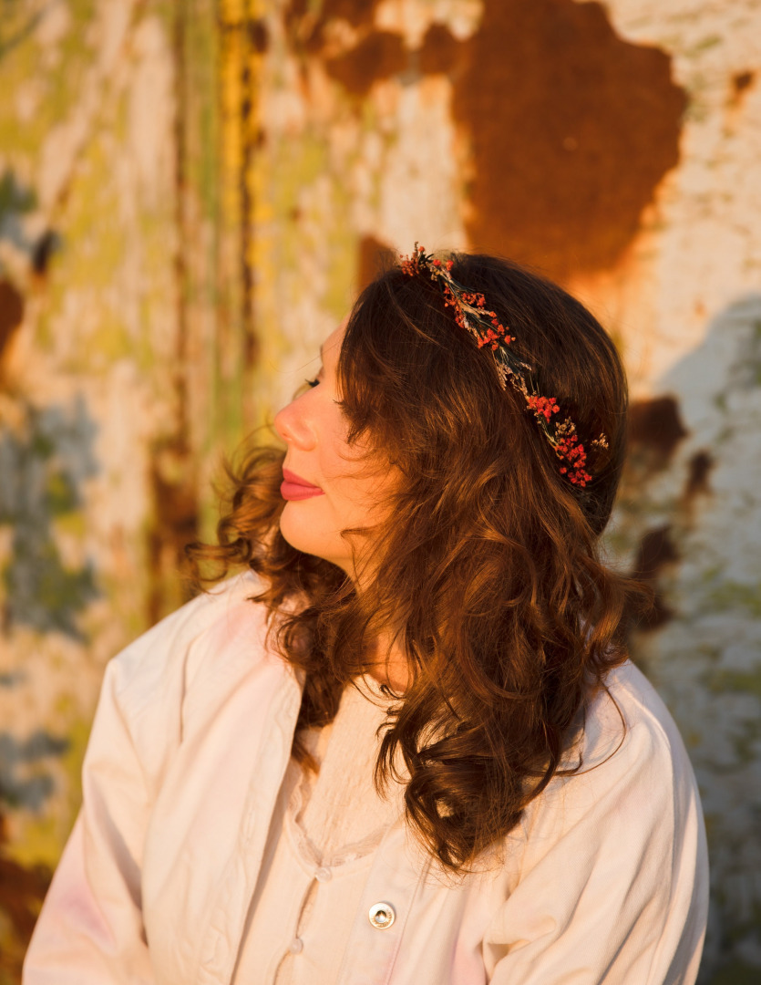Red , Occasion: Wedding , Green , Wedding accessories by style: Woodland , Hair wreaths: Fully decorated